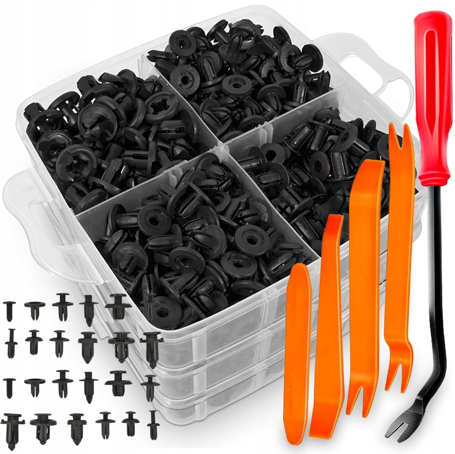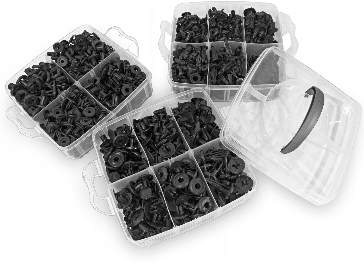 Набір 625 елементів , що включає 18 найпопулярніших затискачів розміру та кріплення кріплення. GM, Chrysler, Subaru, Volkswagen тощо