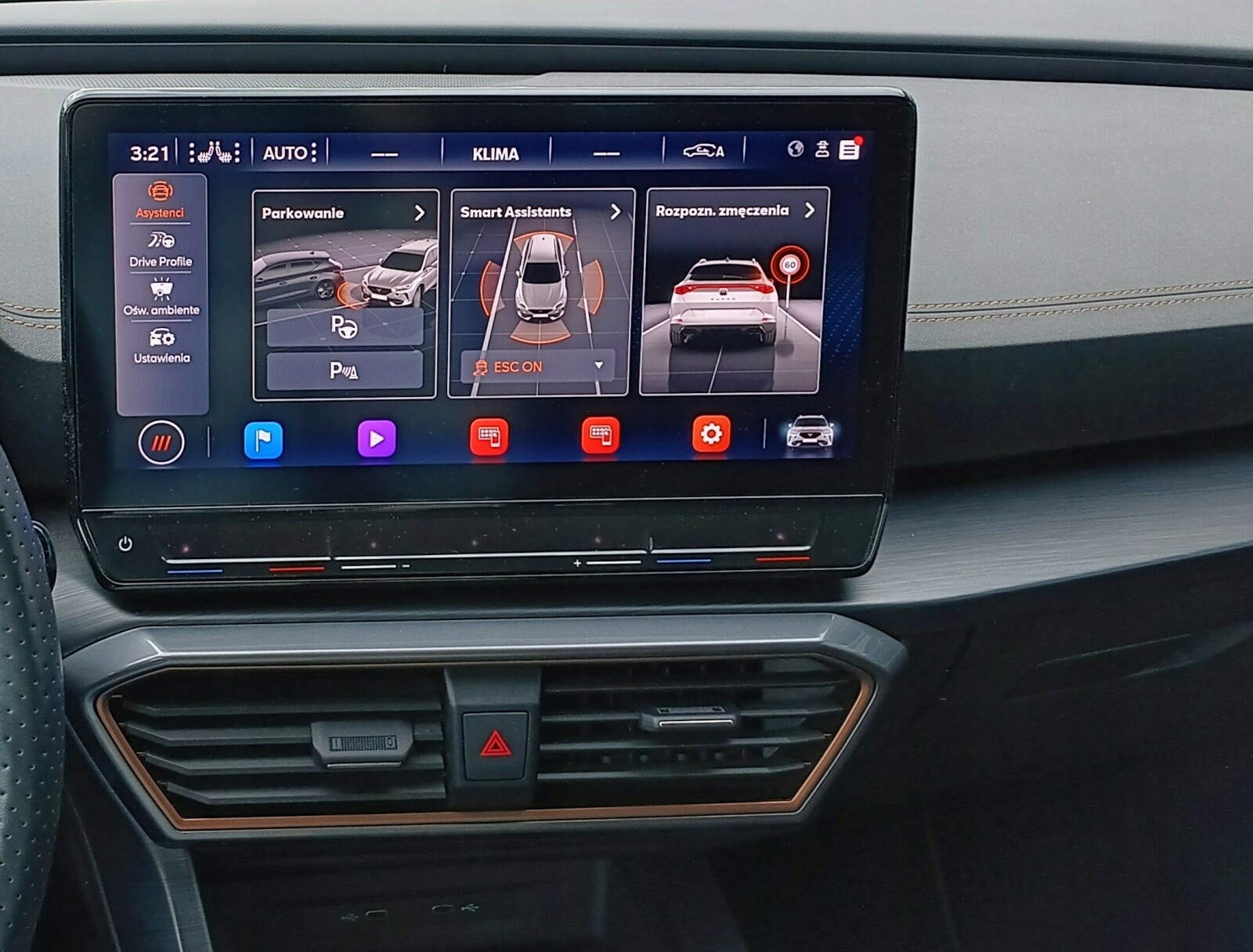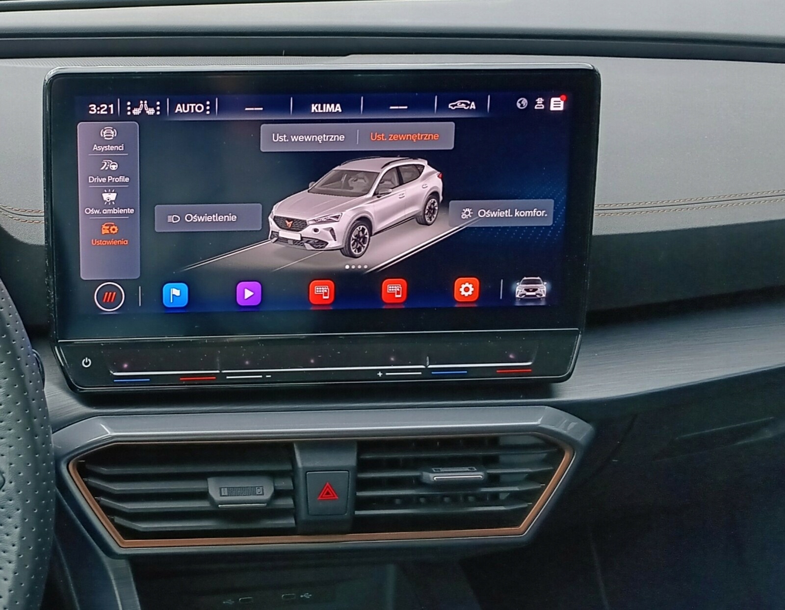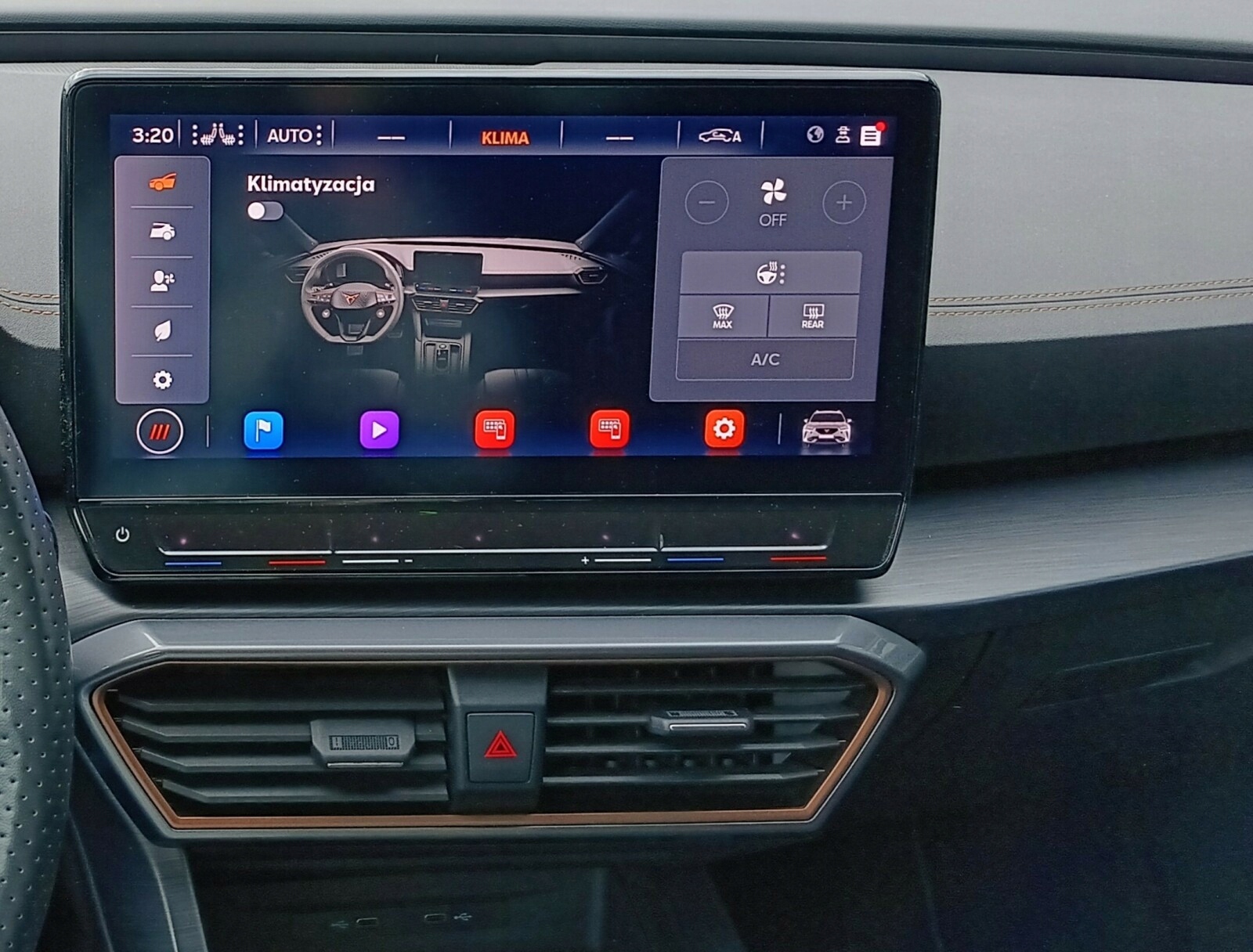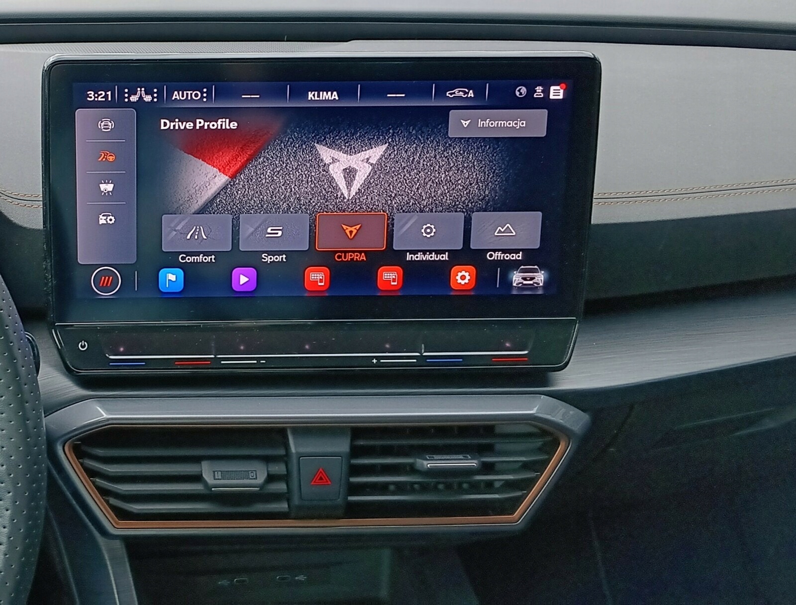 Багатофункціональне спортивне рульове колесо, покрите шкірою та нагрівається кнопками Cupra,