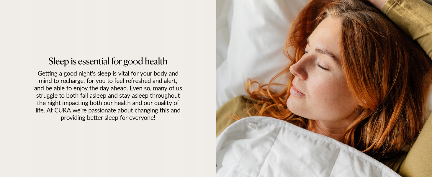 - Спі, як немовля: важка ковдра відчувається як ніжні обійми. Це допомагає їм швидше заснути, міцно спати та прокидатися бадьорими. Спати ще ніколи не було так легко! Cura зі Швеції є лідером на ринку важких ковдр у Європі.