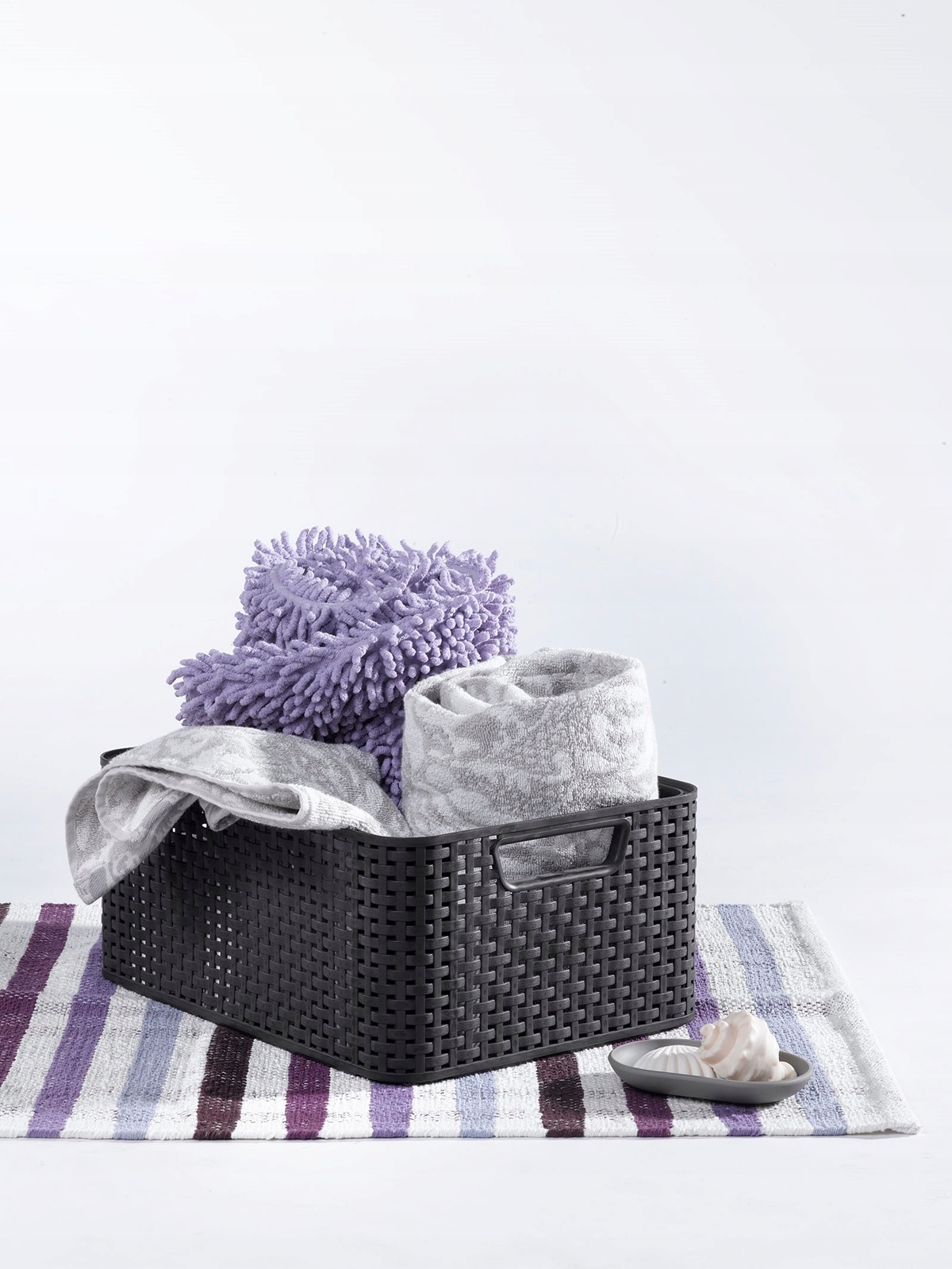 Кошики в стилі ротанга були розроблені, щоб задовольнити очікування дуже вимогливих людей. Завдяки їхньому дизайну кошики чудово виглядатимуть у ванній кімнаті, на кухні чи у вітальні. Ми навіть можемо покласти в них тканинні речі (вони мають маленькі отвори, які роблять кошик повітряним). Для виробництва цих контейнерів використовувався поліпропілен - матеріал, який є міцним і підлягає переробці. Завдяки цьому кошики прослужать роками. Інші наші аукціони включають ці кошики різних кольорів, розмірів, а також доступні версії з кришками.