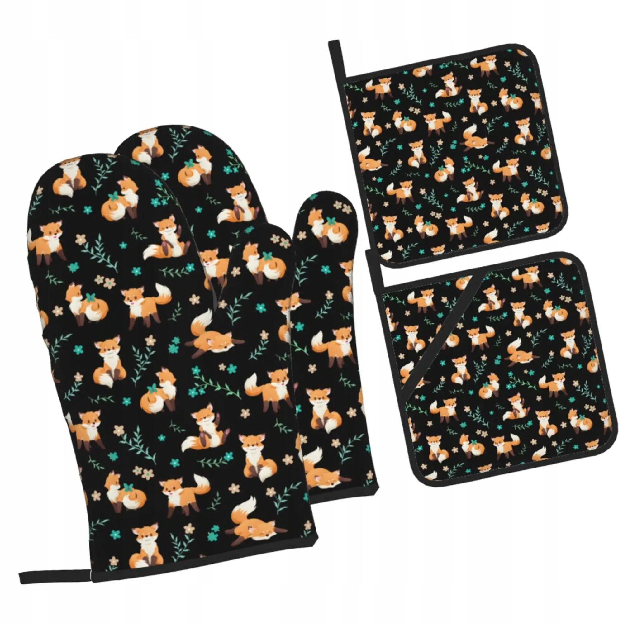 Cute Fox Oven Mitts and Pot Holders Insulation Gloves Microwave Anti-scald