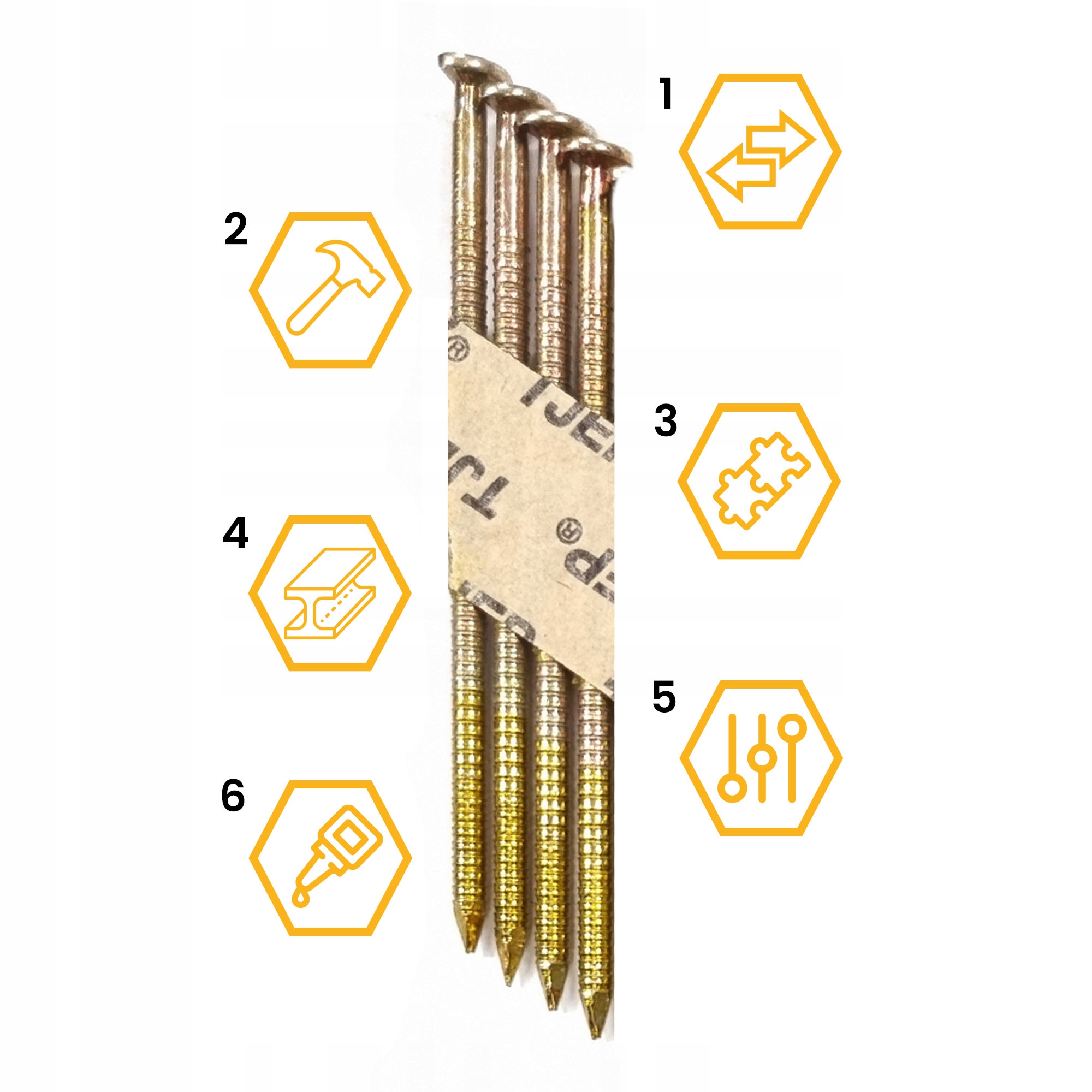 - Цвяхи Tjep, скріплені папером, підходять для інструментів таких компаній: Tjep, Makita, Paslode, Senco, Max, Prebena, Bea, Stanley Bostitch, RGN, Rawlplug, Hitachi тощо.
