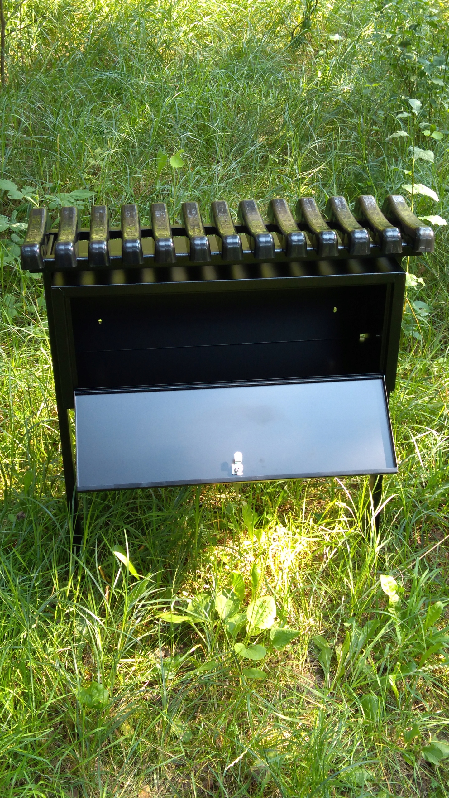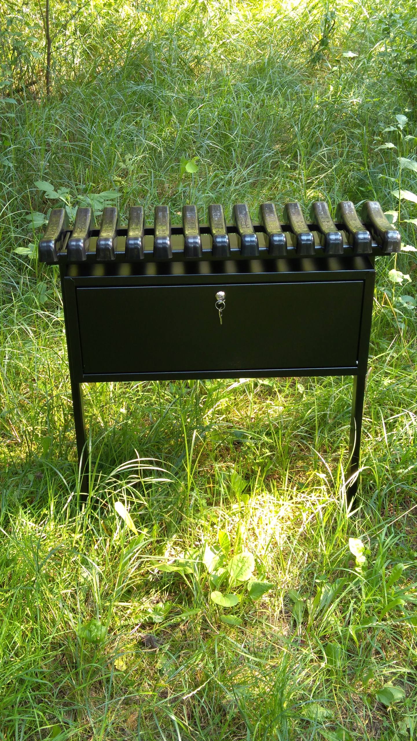 Коробка під сидінням також виготовлена з металу та порошкове покриття.Замикається на ключ.