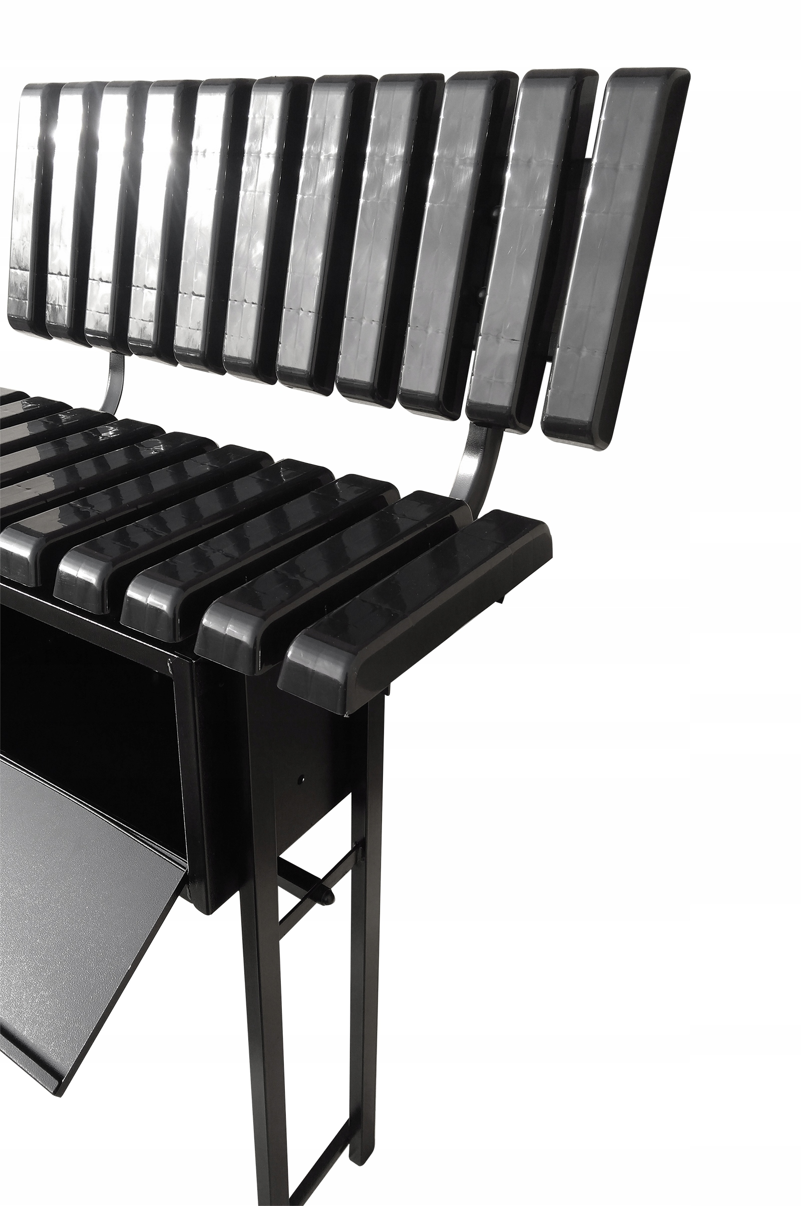 Все це пофарбовано порошковою фарбою в глянцевий чорний Сидіння і спинка виготовлені з ПВХ ламелей (ребристих ребер), стійких до атмосферних явищ.