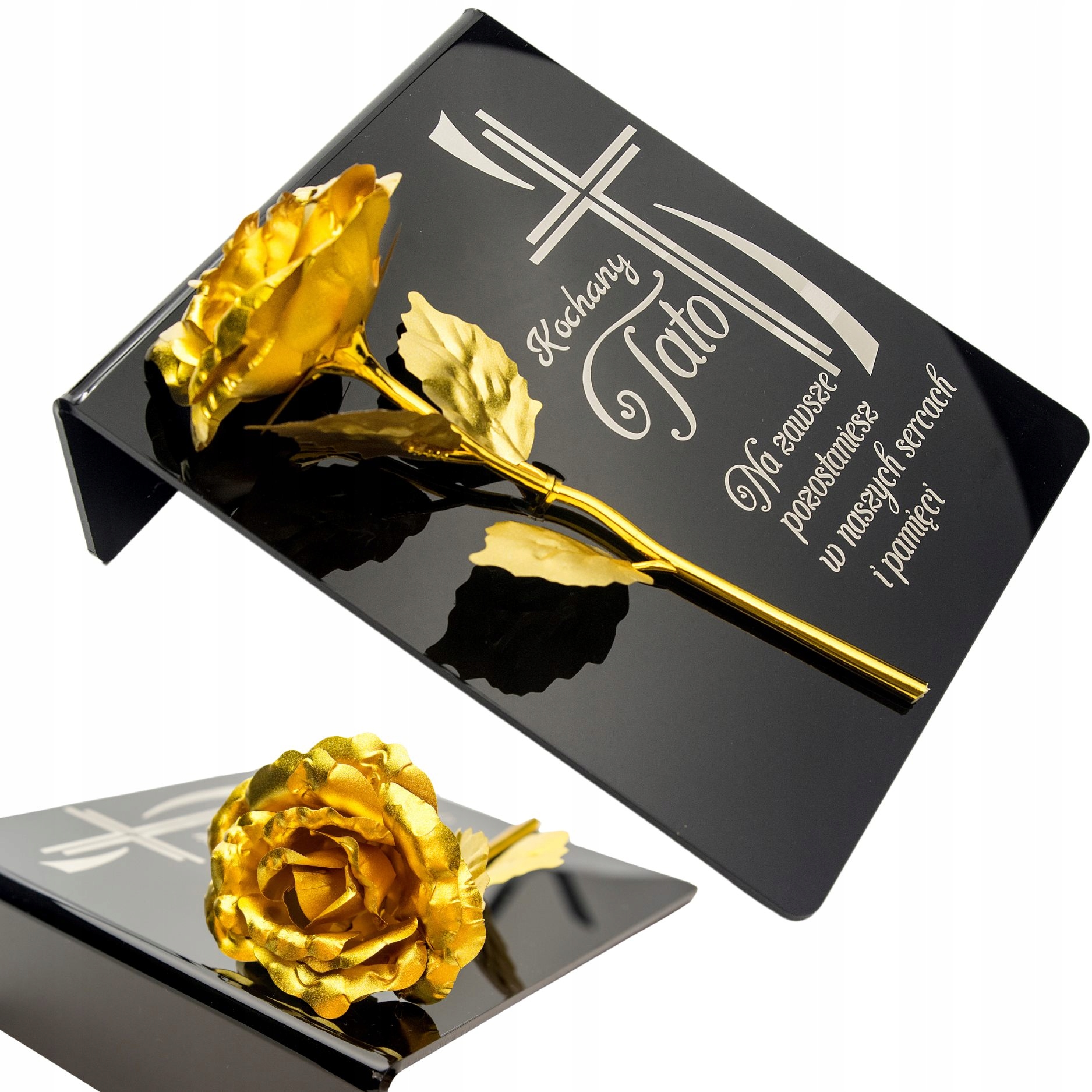 Золота троянда на постаменті з гравіюванням ДЛЯ ТАТА