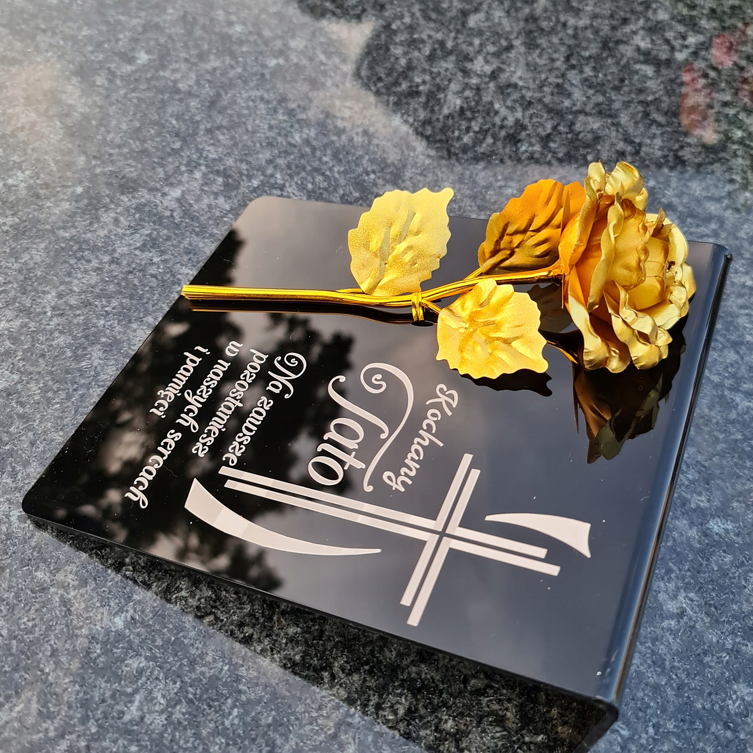 Цвинтарна підставка ТРОЯНДА ДЛЯ ТАТА МОГИЛЬНА ПРИКЛАДА ГРАВІЮВАННЯ ГРАФ
