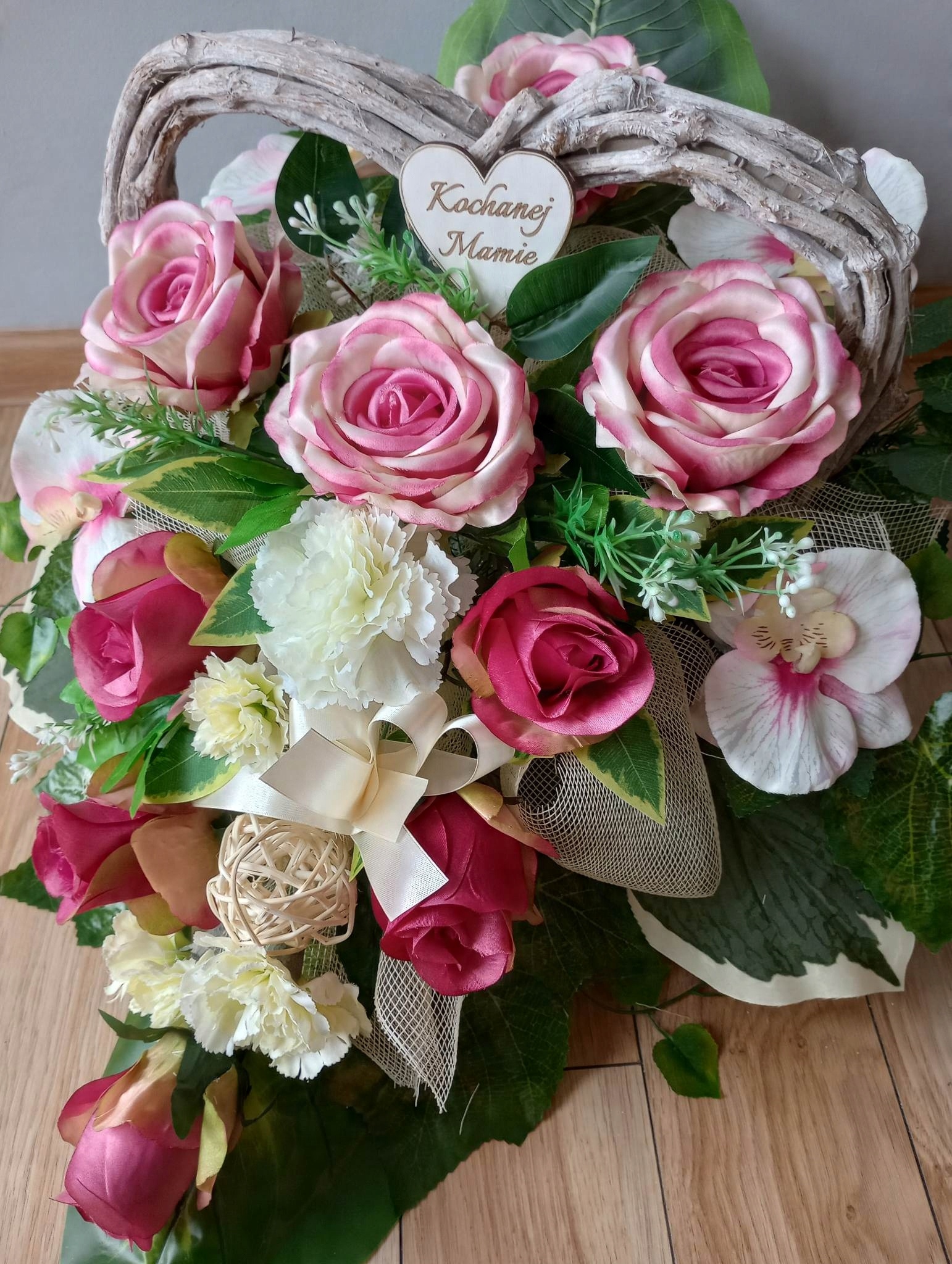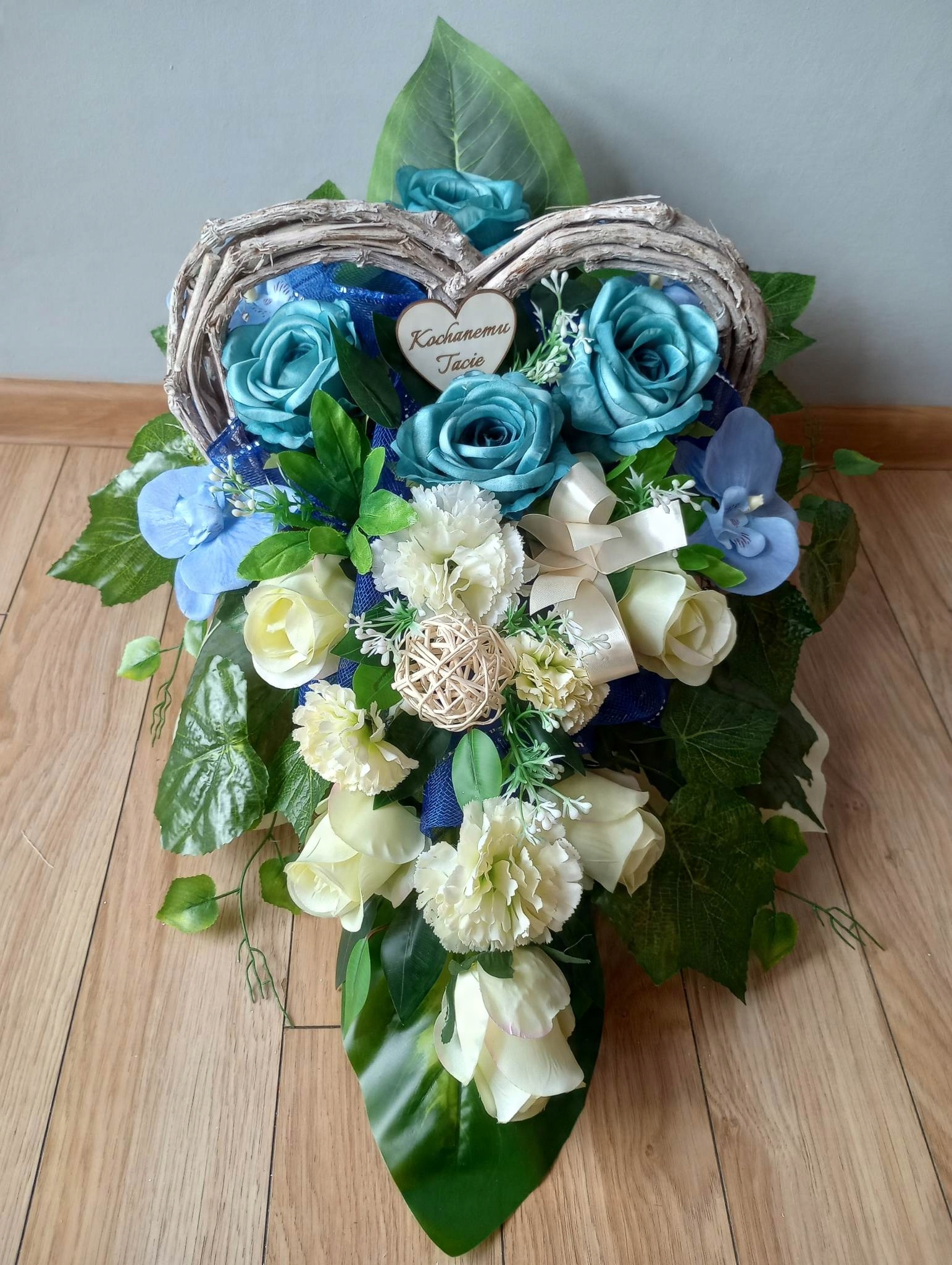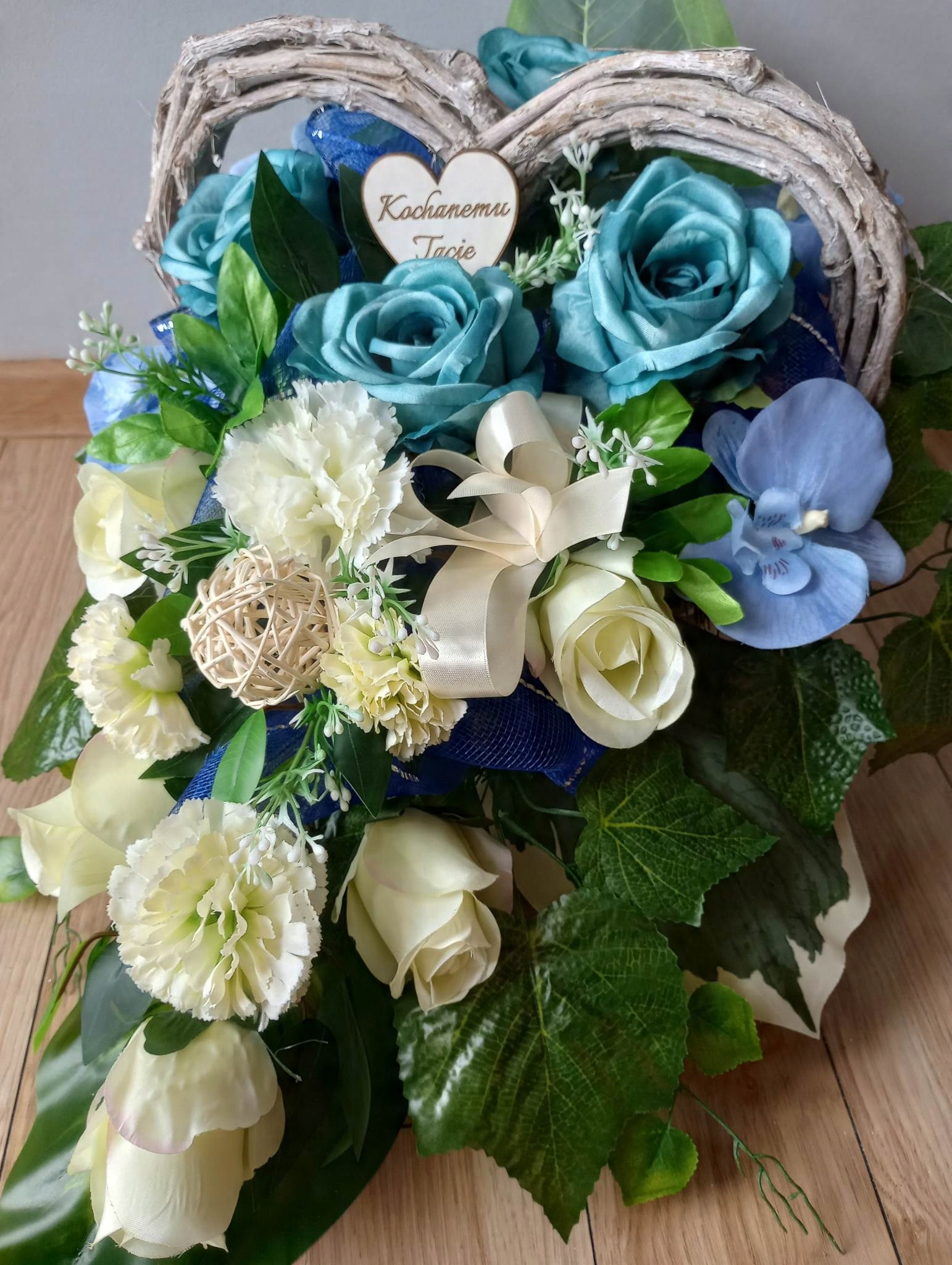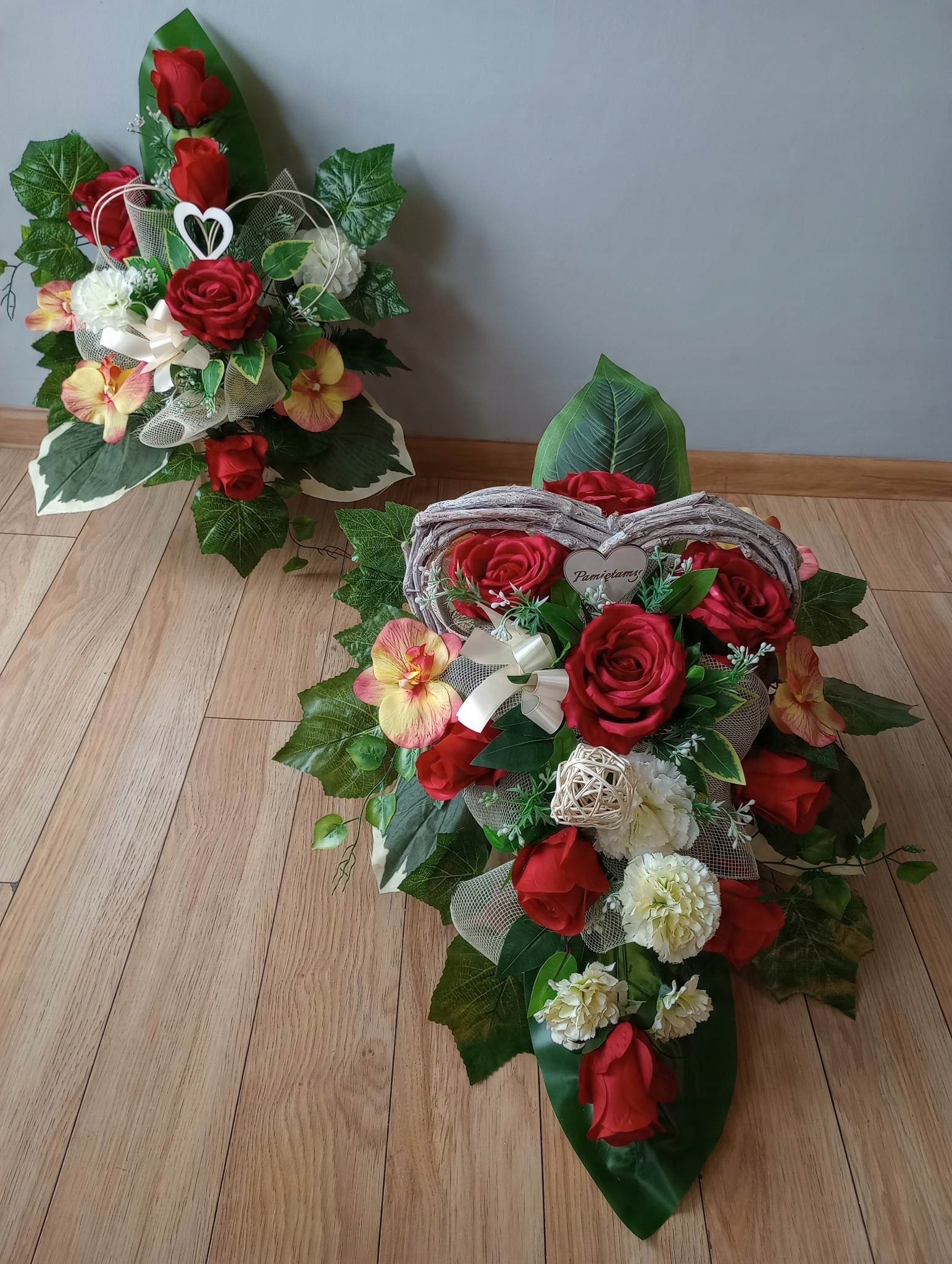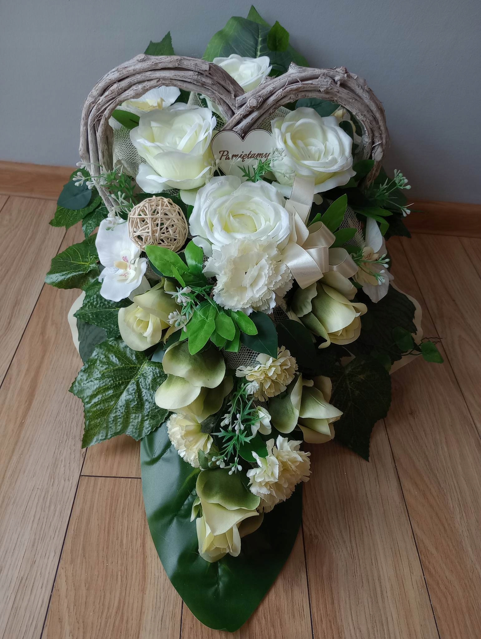 ШТУЧНІ КОМПОЗИЦІЇ ДЛЯ МОГИЛУ КОШИКУ У ФОРМІ СЕРЦЯ З ЛОЗАМИ