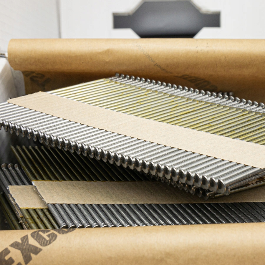 Цвяхи для пневматичних, газових та електричних цвяхозабивних машин. Цвяхи, з'єднані папером під кутом 34°