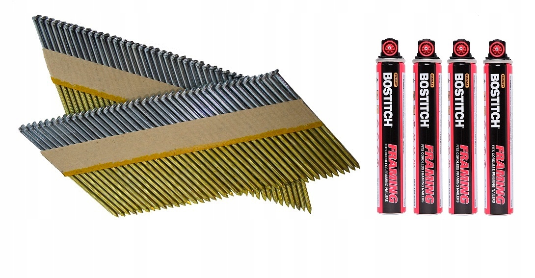 ЦВЯХИ, З’ЄДНАНІ З ПАПЕРОМ ПІД КУТОМ 34° + ГАЗОВІ БАЛОНИ ОК