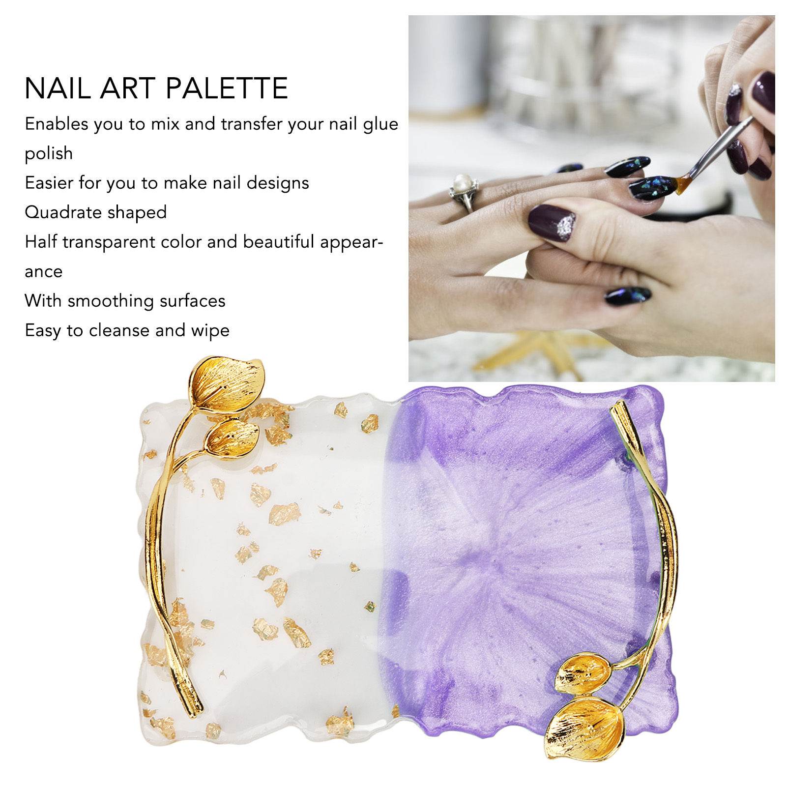 1. Зручне змішування: палітра для нігтів зі смоли дозволяє змішувати та переносити лак для нігтів на клей для нігтів, що полегшує створення дизайну нігтів.