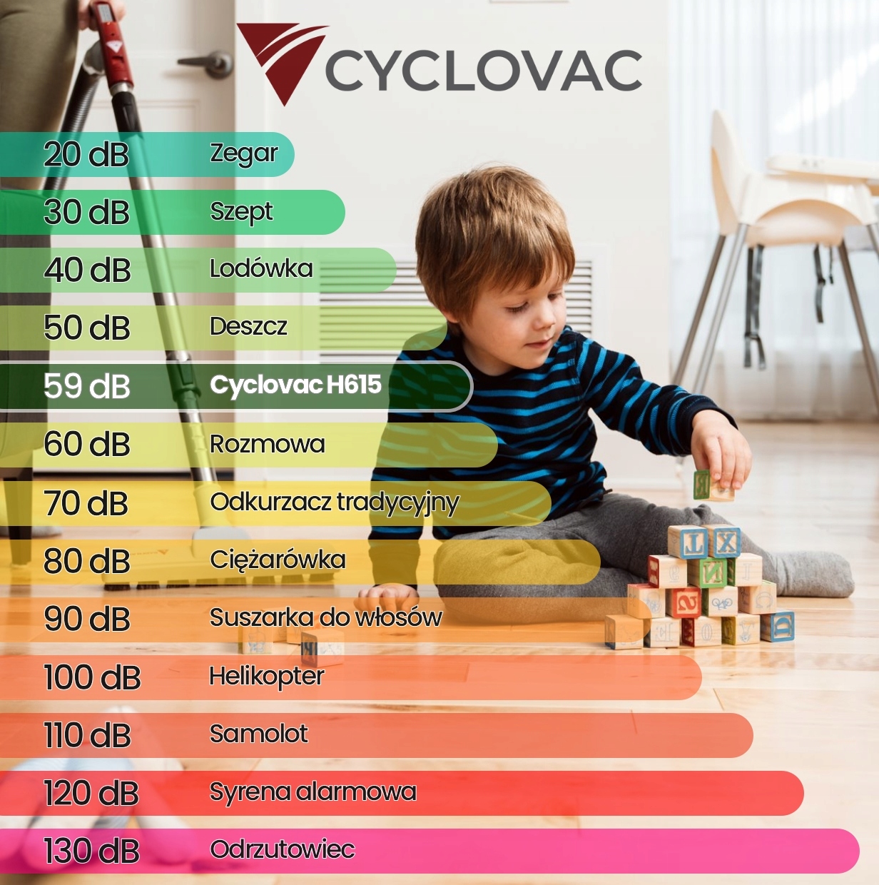 Ці інноваційні технологічні рішення роблять рівень шуму лише 59 дБ , що робить його одним із найтихіших центральних пилососів, доступних на ринку, забезпечуючи комфорт використання без порушення домашнього спокою.