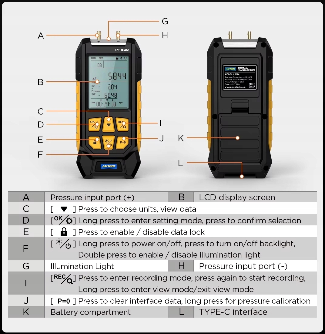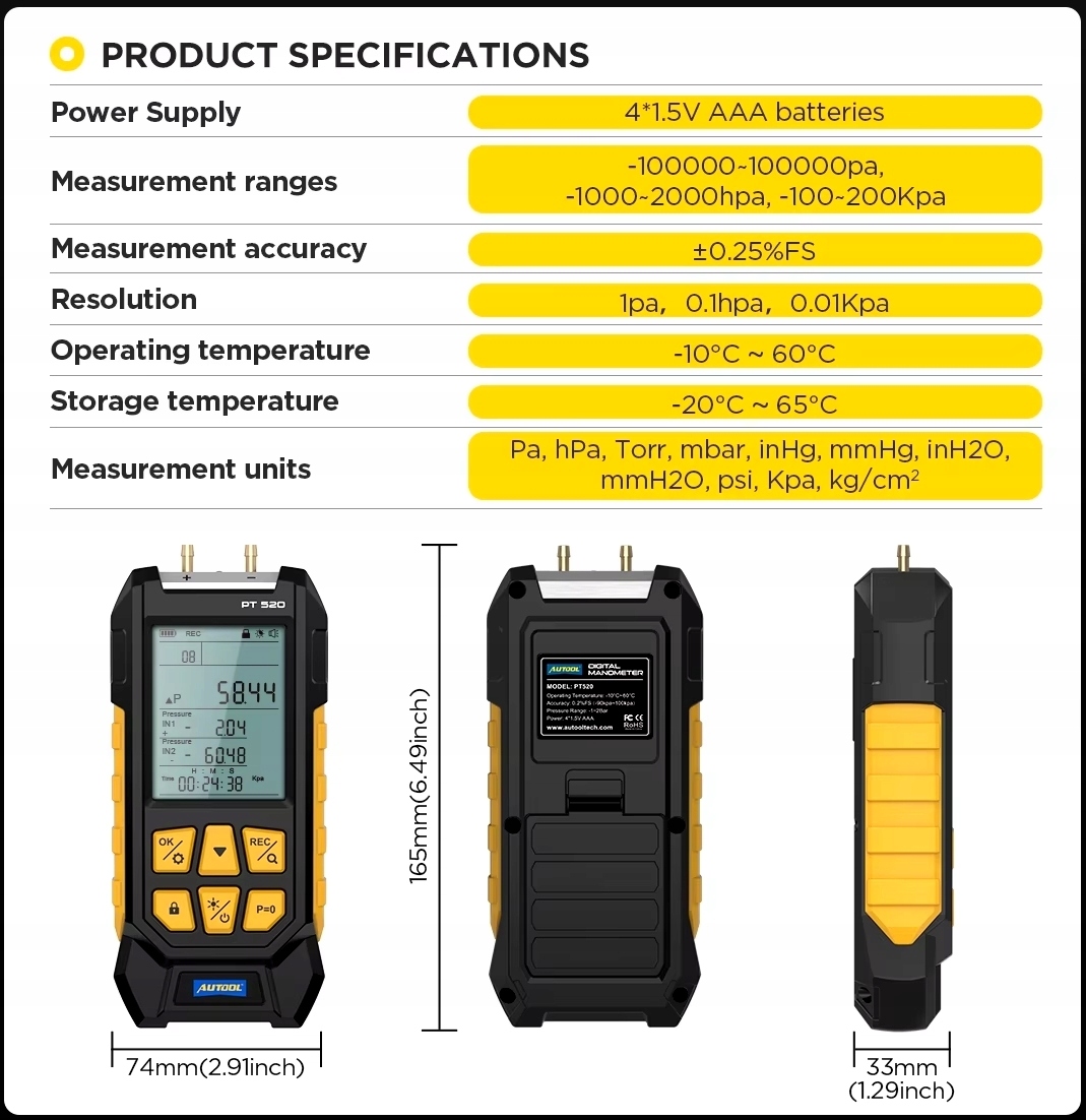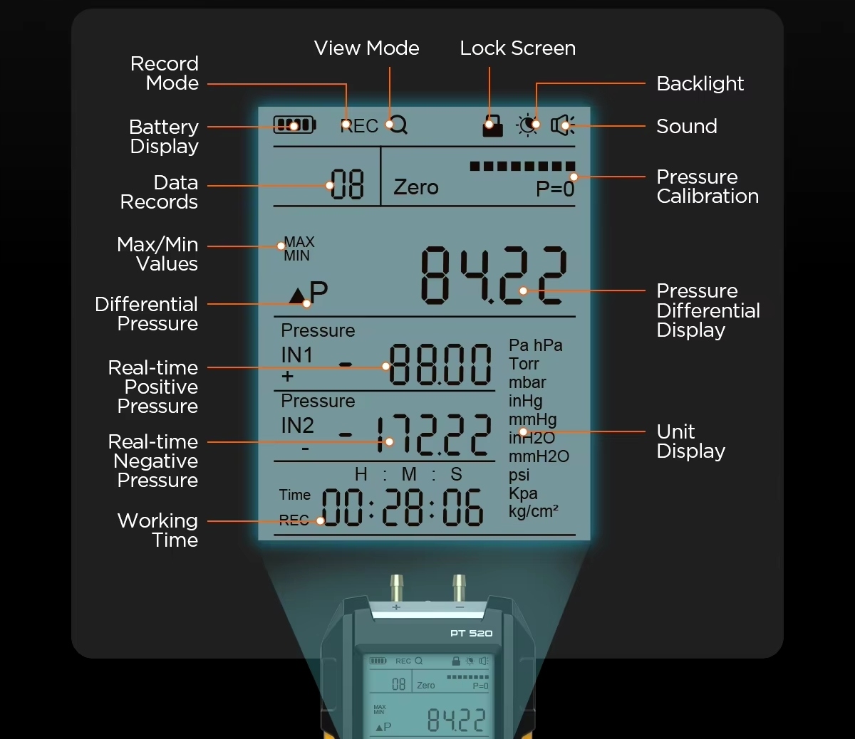 CYFROWY MIERNIK CIŚNIENIA DOLOTU POWIETRZA MANOMETR KOMPRESJA -100-200 KPa