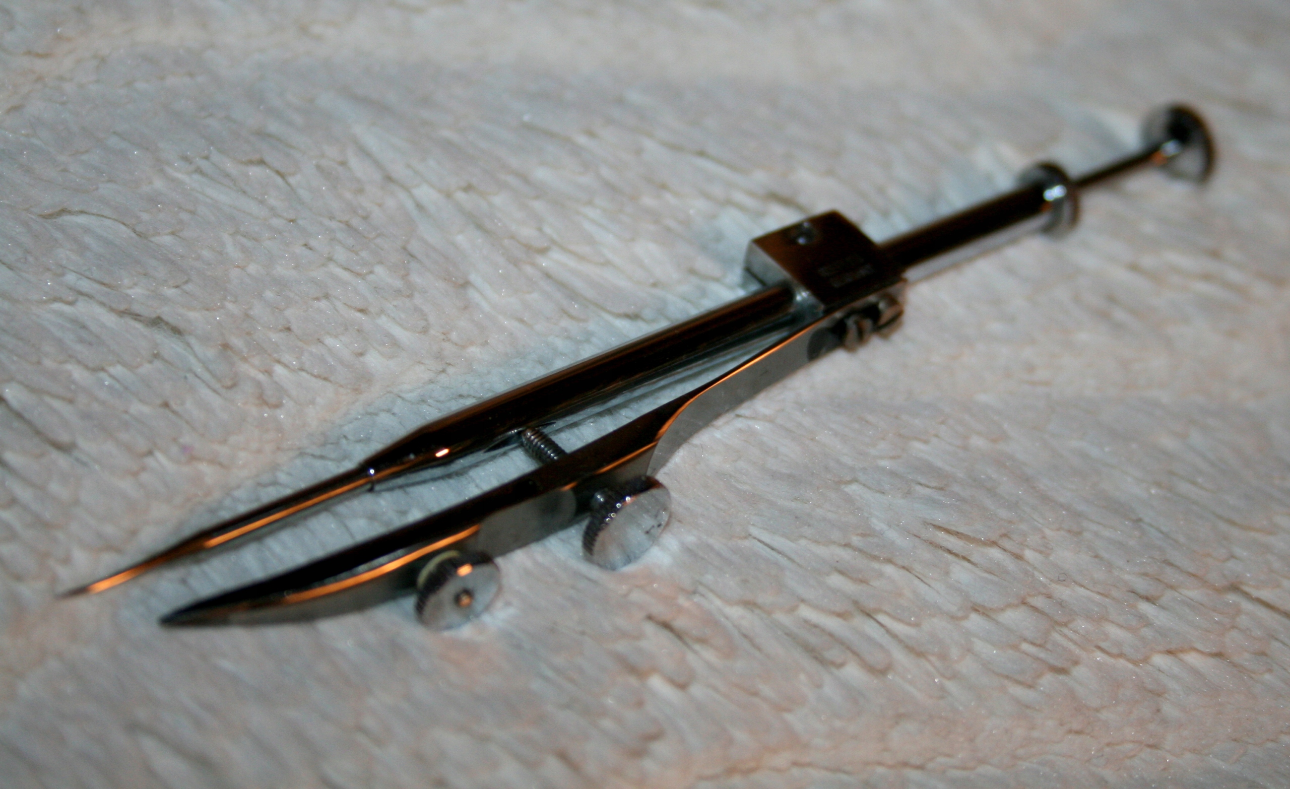 Він має регулювальний гвинт, який дозволяє малювати кола з дуже висока точність.