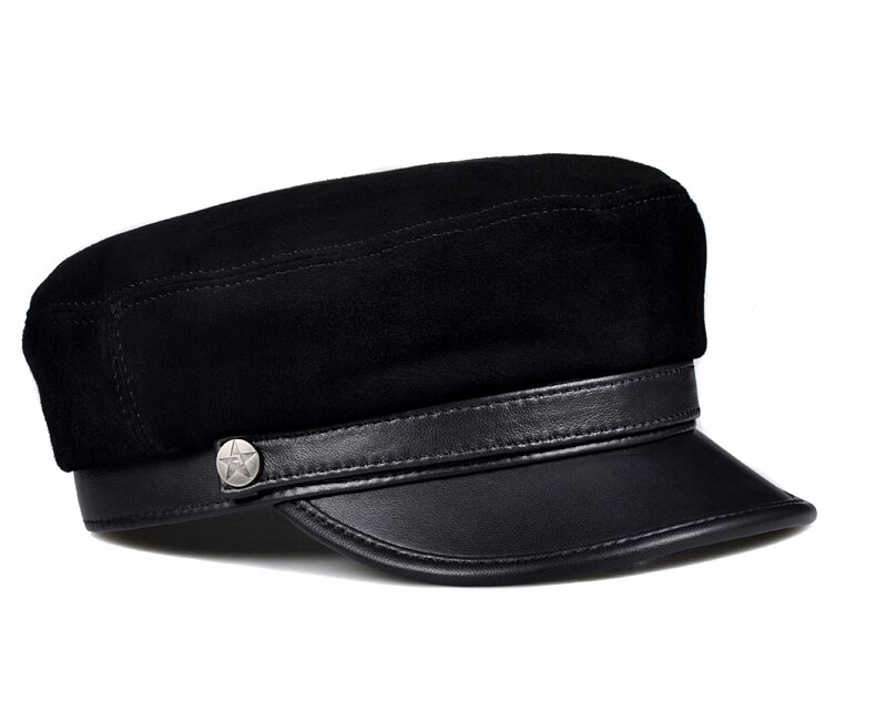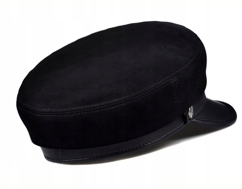 CZAPKA BOSMANKA KASZKIET SKÓRA ZAMSZ CZARNA SKÓRZANA ZAMSZOWA 58 - 60 CM