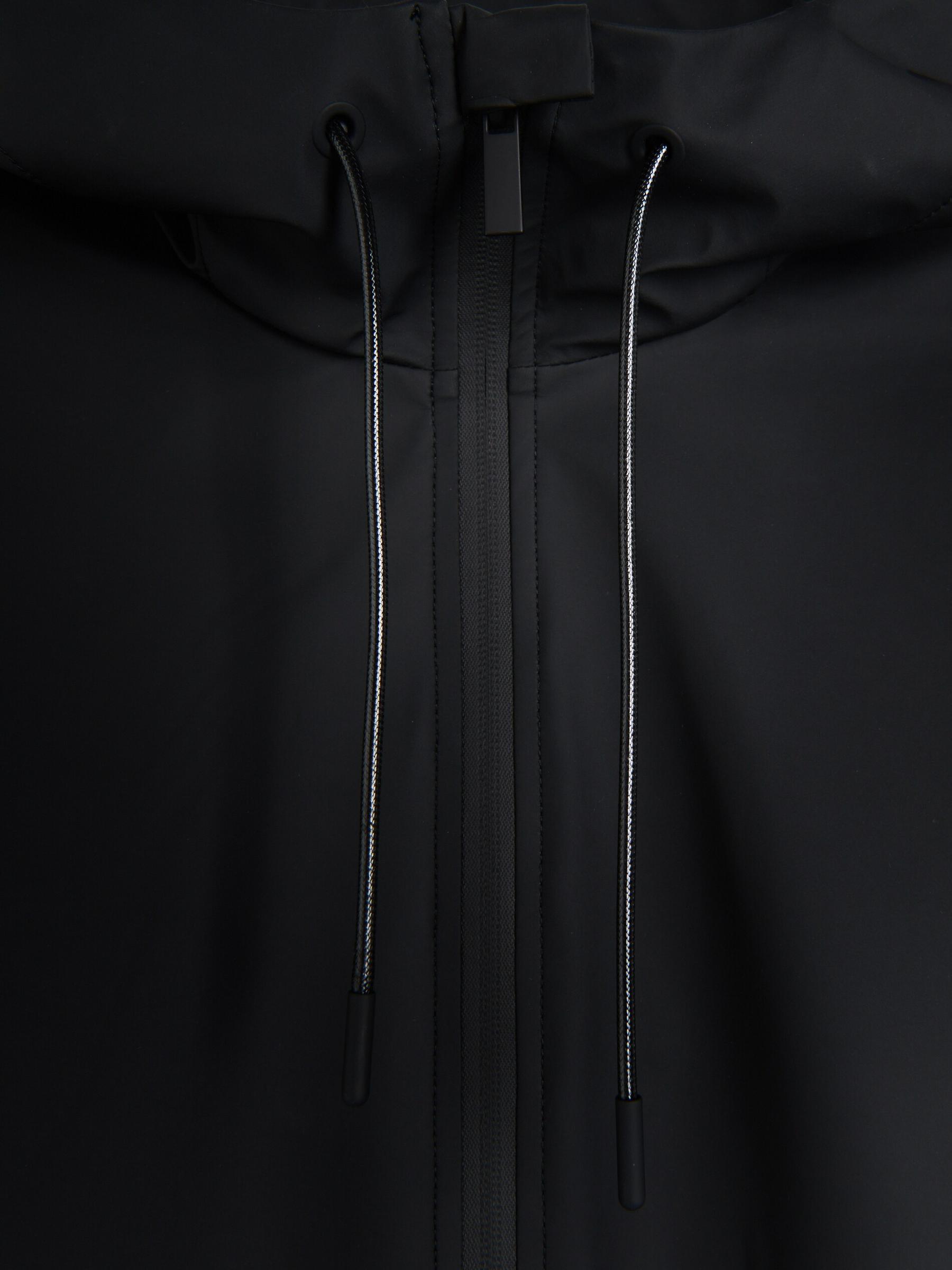 CZARNA DŁUGA PROSTA GŁADKA KURTKA Z KAPTUREM ZASUWANE KIESZENIE M