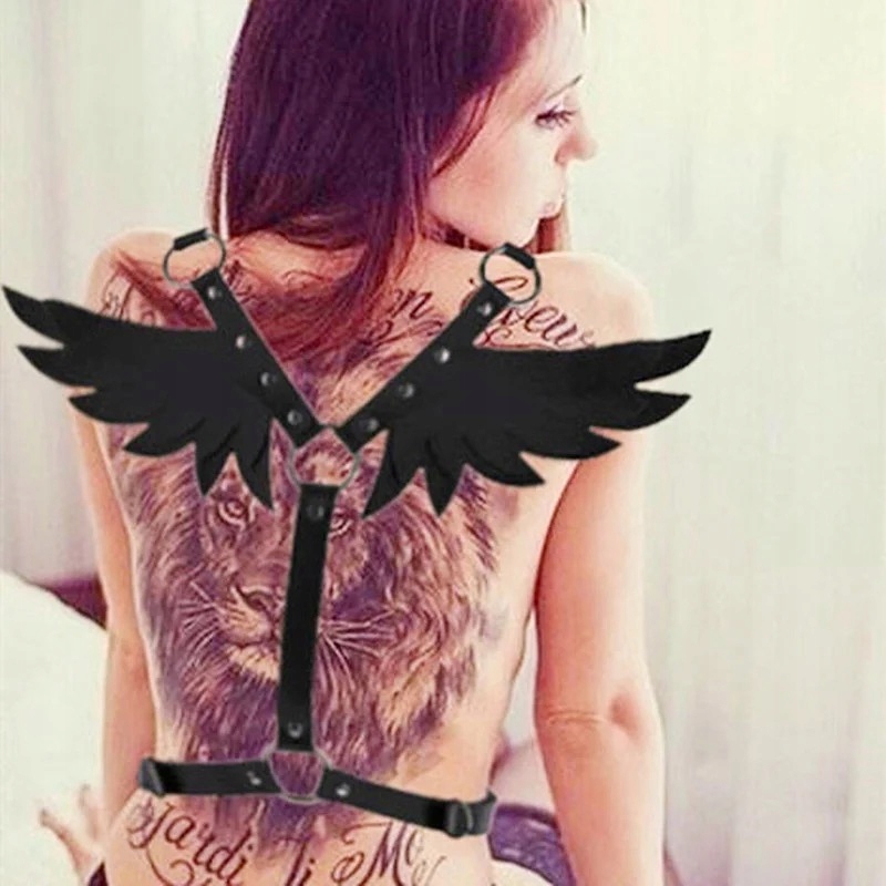 CZARNA OBROŻA BDSM UPRZĄŻ SKÓRA PLECY SKRZYDŁA EROTYCZNE HARNESS SZELKI