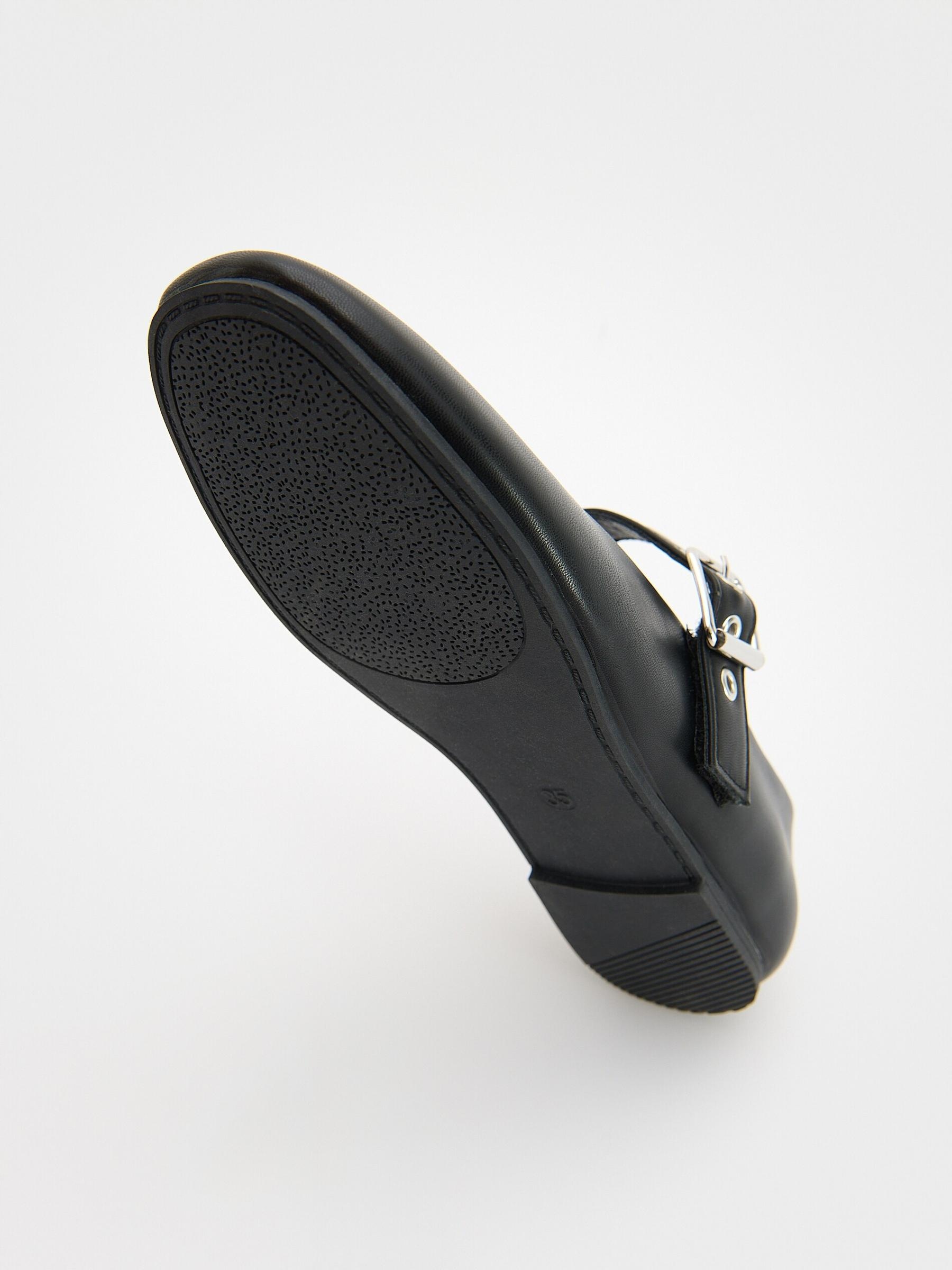 CZARNE KLASYCZNE BUTY BALERINY EKOSKÓRA RZEPY OZDOBNA REGULOWANA KLAMRA
