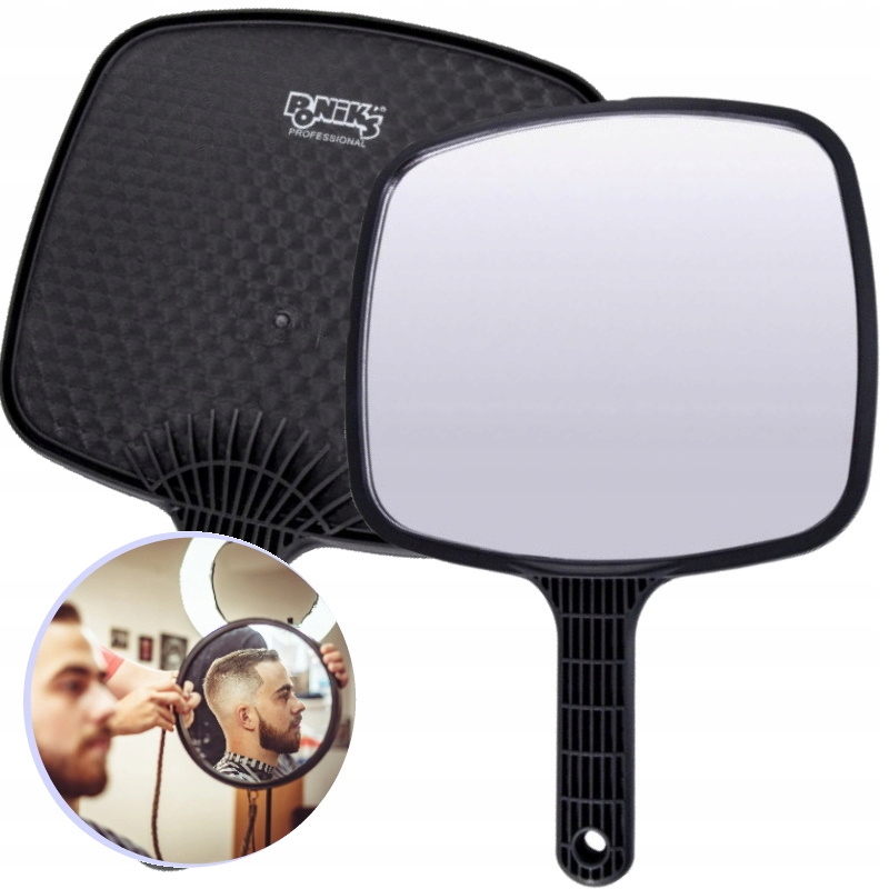 Перукарське дзеркало Ponik дозволяє швидко перевірити зовнішній вигляд вашої зачіски. Його можна тримати в руці або підвісити на додатковий гачок. Дзеркало ідеально підходить для стаціонарної перукарні та мобільних перукарень.