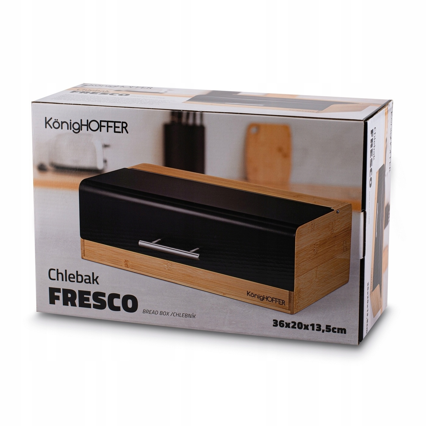 CZARNY CHLEBAK bambusowy pojemnik NA CHLEB 36x20x13,5cm Fresco Konighoffer
