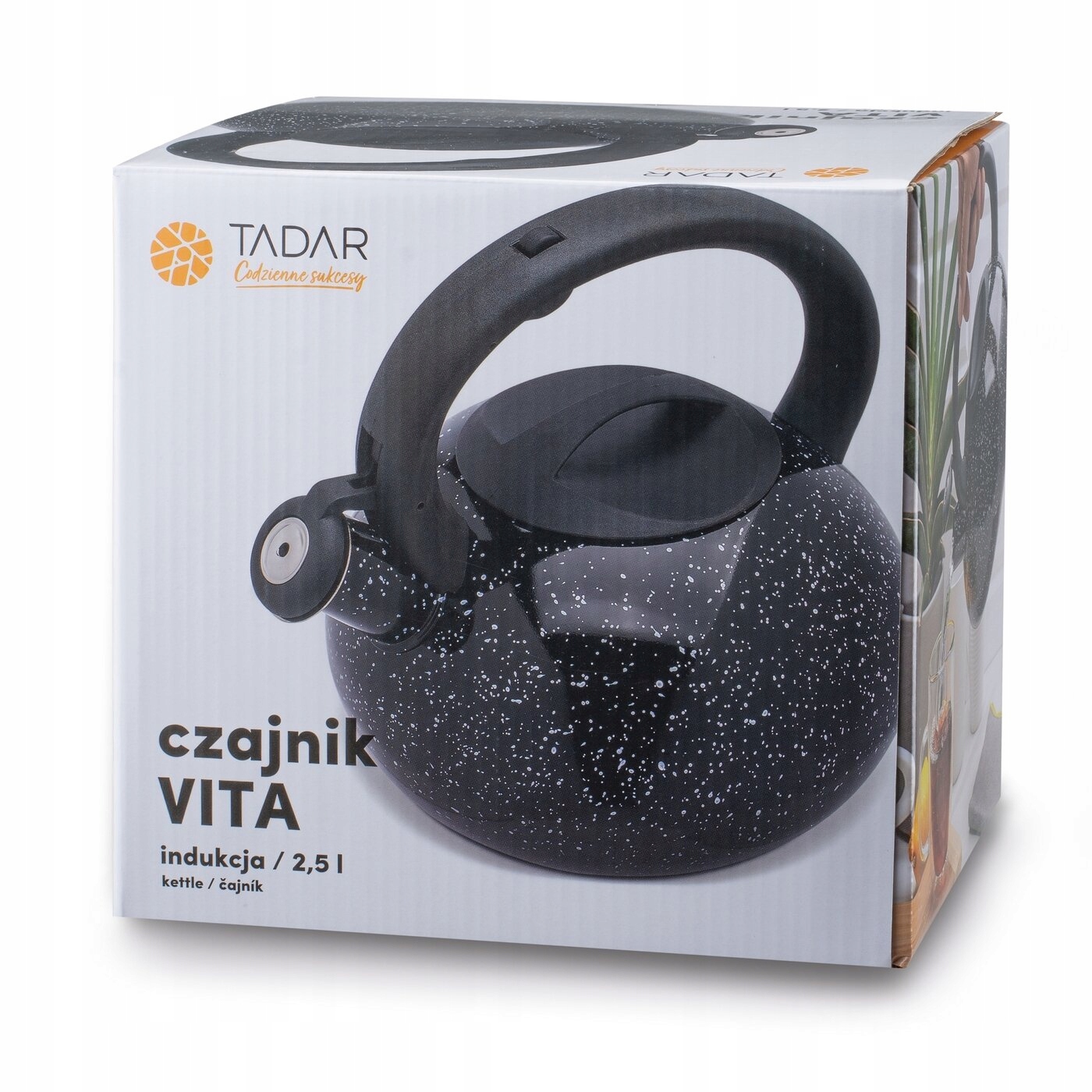 Czarny CZAJNIK NA GAZ INDUKCJA czajnik Z GWIZDKIEM marmurkowy 2,5L Vita