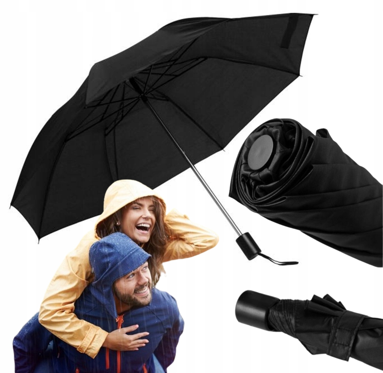 CZARNY PARASOL SKŁADANY PORĘCZNA PARASOLKA MAŁA DO TOREBKI