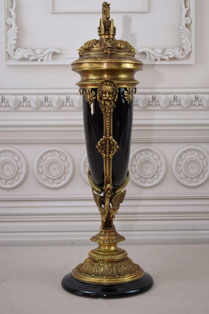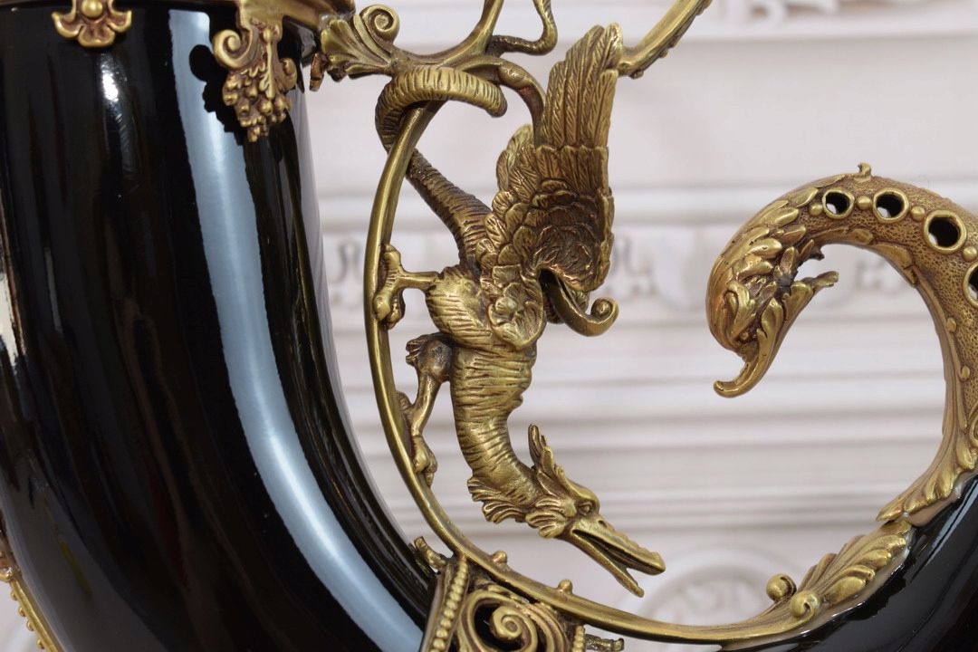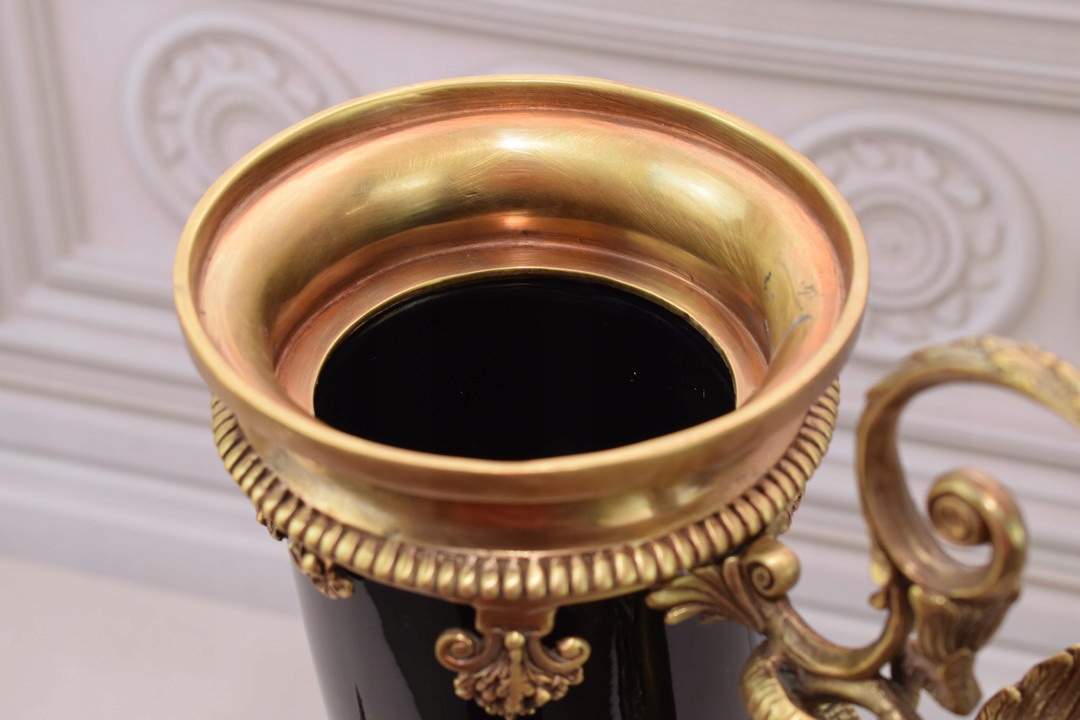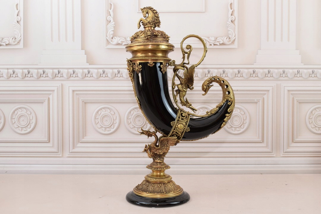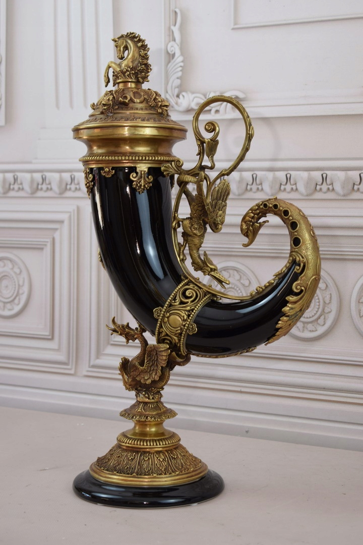 Czarny Róg Obfitości - Porcelana + Brąz - Cornucopia na Szczęście Dobrobyt