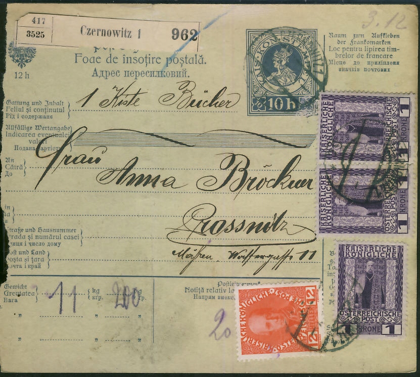 Czernowitz -Possnitz 1916 - Пост Begleitadresse