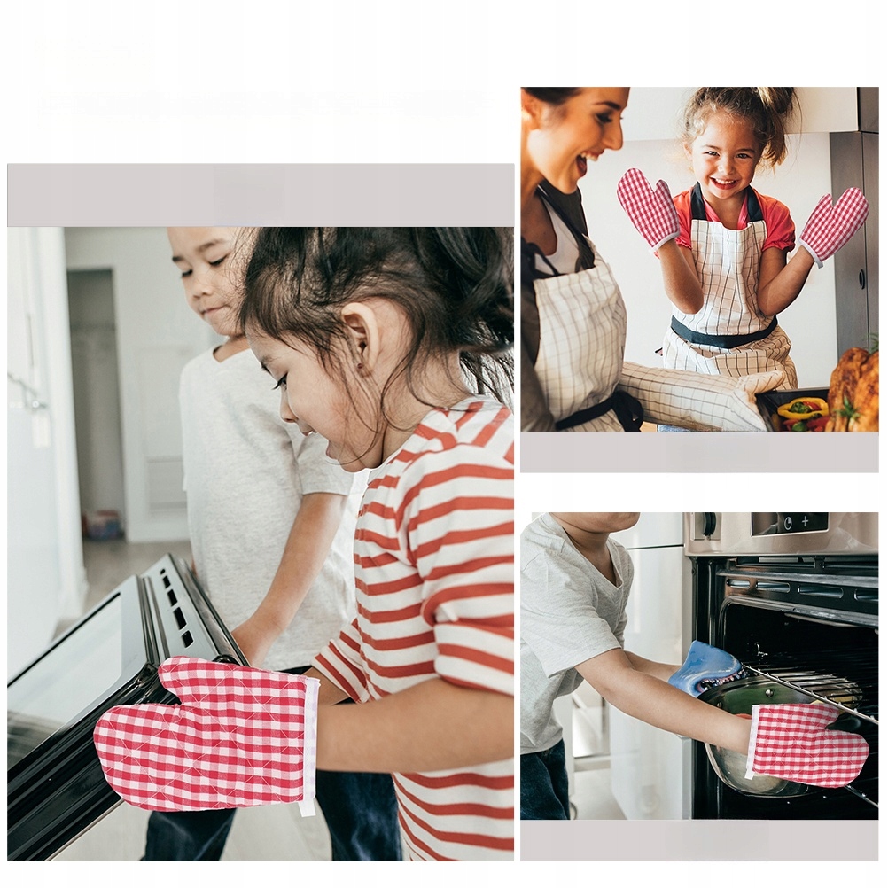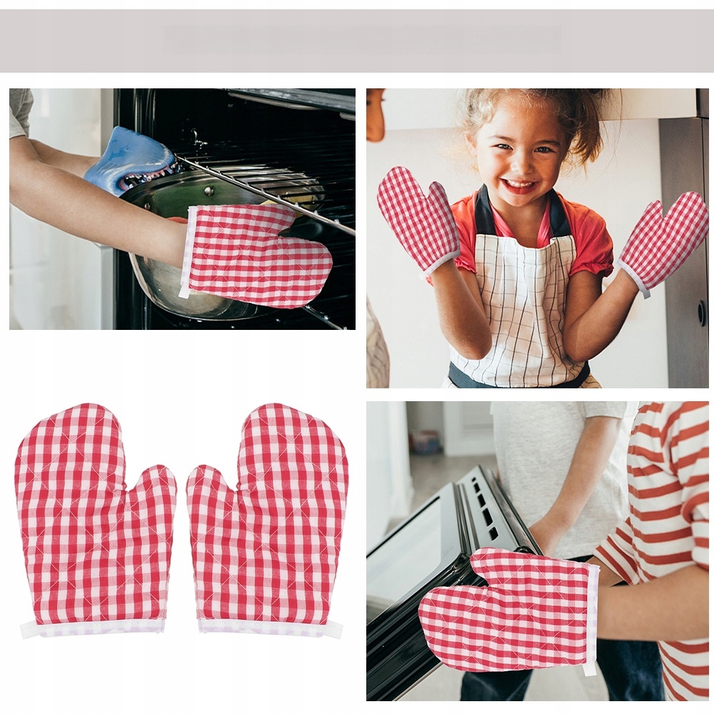 CZERWONE RĘKAWICE W KRATĘ GRILLOWE DZIECIĘCE RĘKAWICE PIEKARNICZE DZIECIĘCE GORĄCE DO KUCHNI