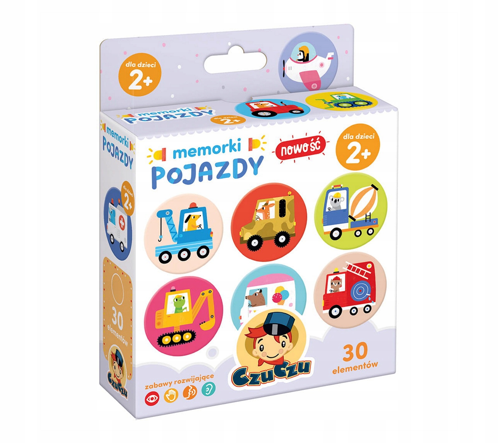 Драйвери різних транспортних засобів пропонують вам грати разом. Навчальний набір містить 30 великих елементів. Ідеально підходить для першої простої гри пам'яті.