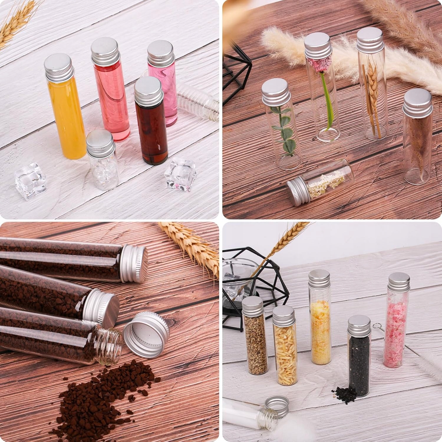 - Набір тестових труб: упаковка містить 40 герметичних скляних пляшок з ковпачком. Ємність трубки - 20 мл. Приклеюючи етикетку з іменем або текстом на тестовій трубці, ви можете ідеально підготувати своїх близьких чи друзів. Його можна використовувати як сувенір з різними начинками, подарунками тощо, залежно від уподобань гостей.
