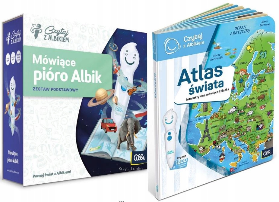 Read with Albik — це серія книжок, ігор та головоломок, які потребують використання електронної ручки Albik. Ви купуєте ручку лише один раз, і вона працює з усіма книгами серії. Для нових публікацій вам потрібно завантажити нове безкоштовне програмне забезпечення. Розмовну ручку можна придбати окремо або в комплекті з вибраною книгою.