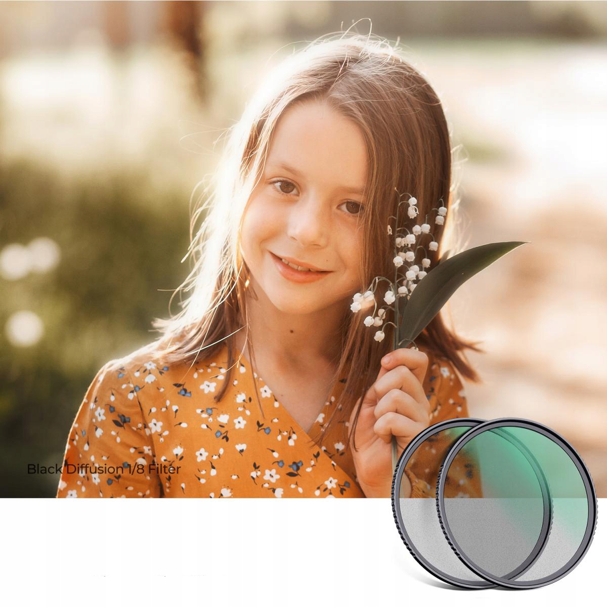 фільтри k & f black Mist з потужністю пом'якшення 1/4 та 1/8 дозволяють створити a Більш органічний, знімайте природу зображення (містичний кінце). Світло , створюючи делікатний ореол навколо них, зберігаючи природний фокус, що покращує загальний вигляд шкіри, пом’якшує зморшки, пори та інше знебарвлення.