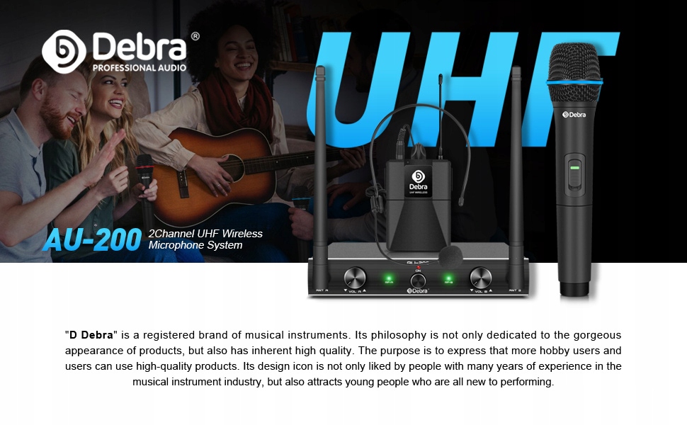 D Debra Au200 Pro 2-канальна бездротова система мікрофона UHF
