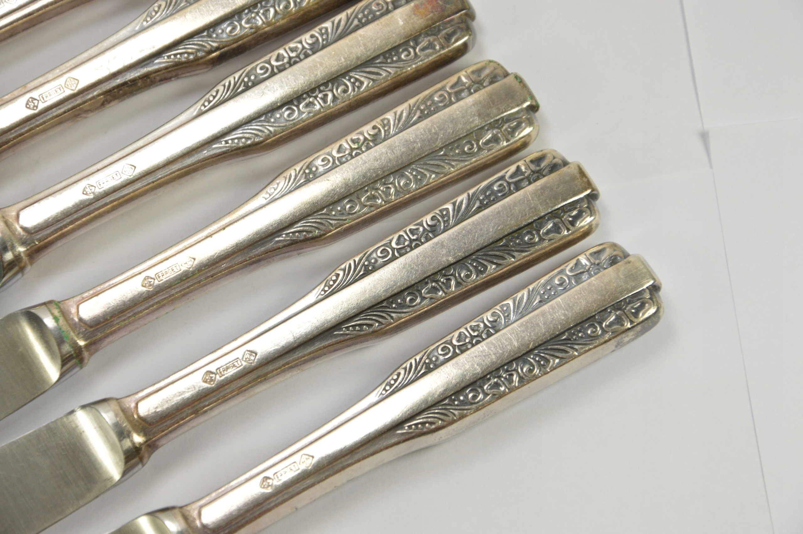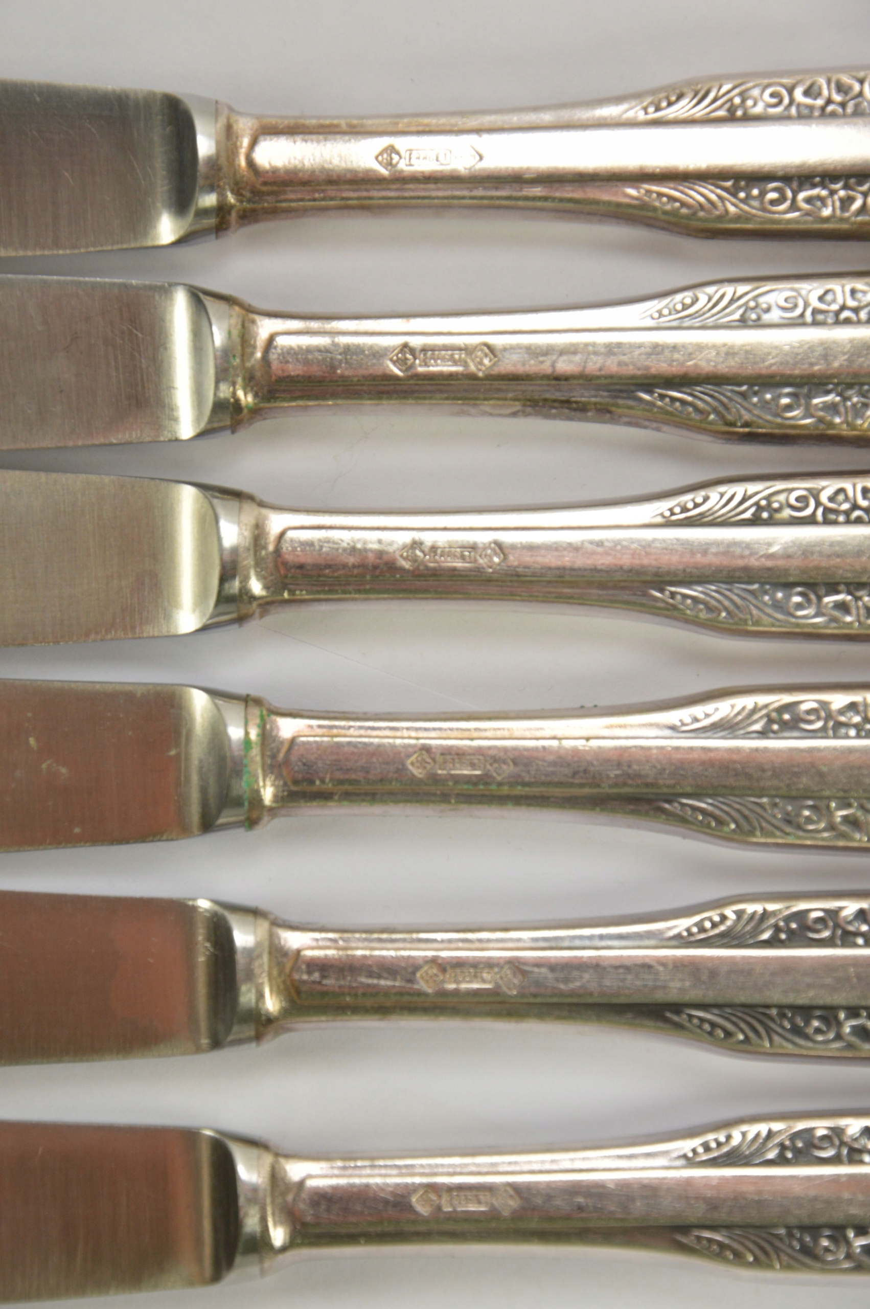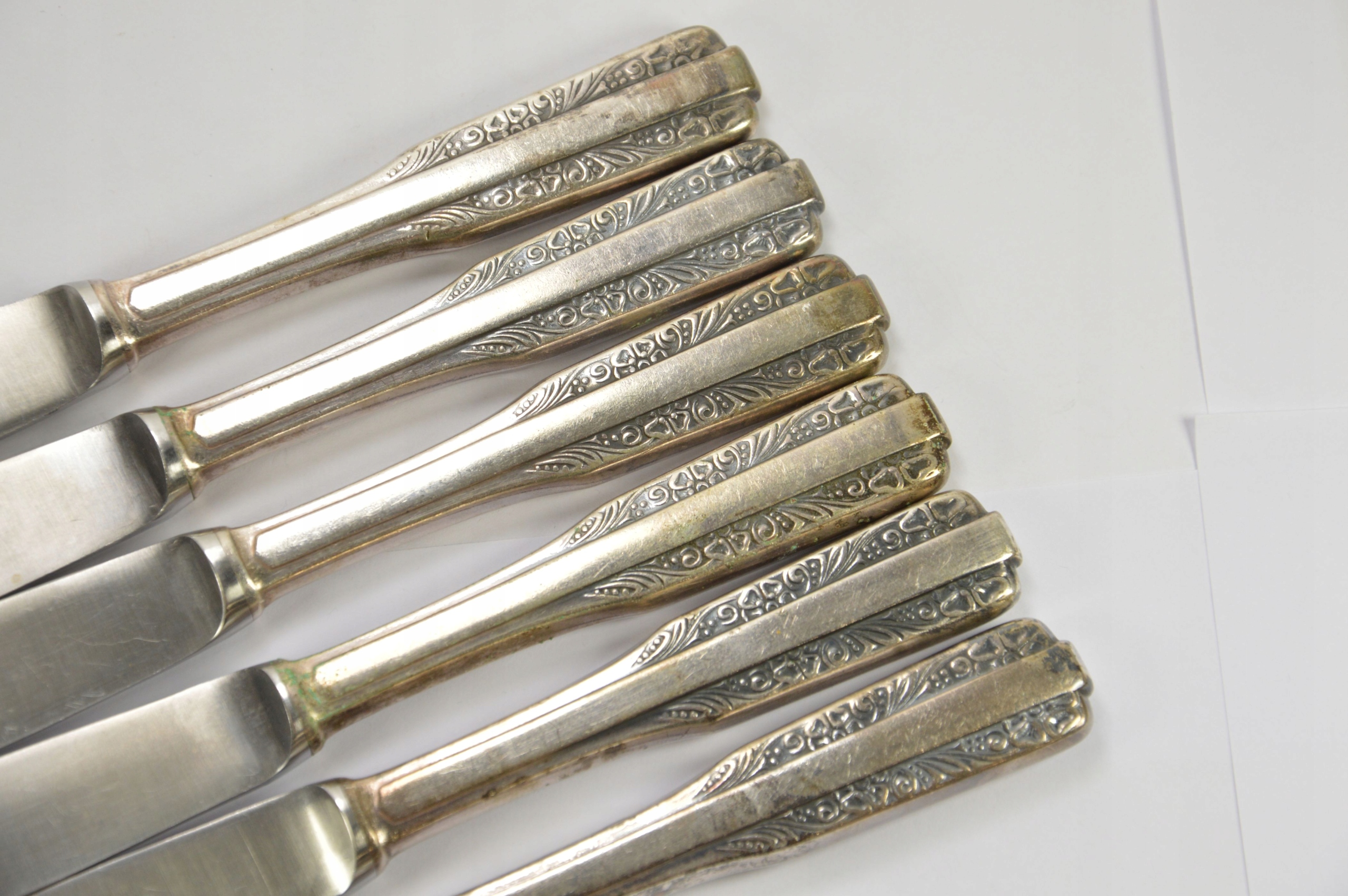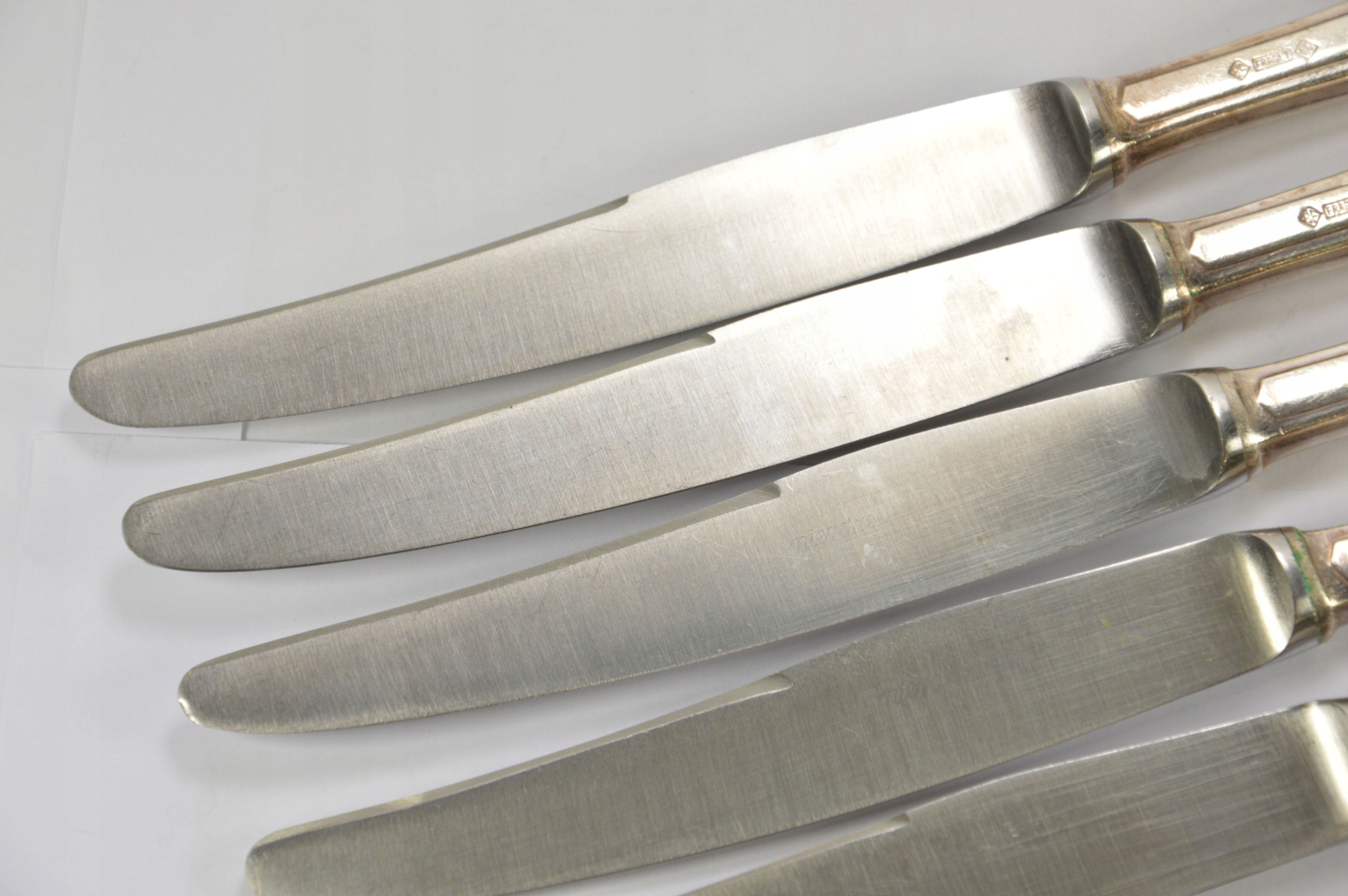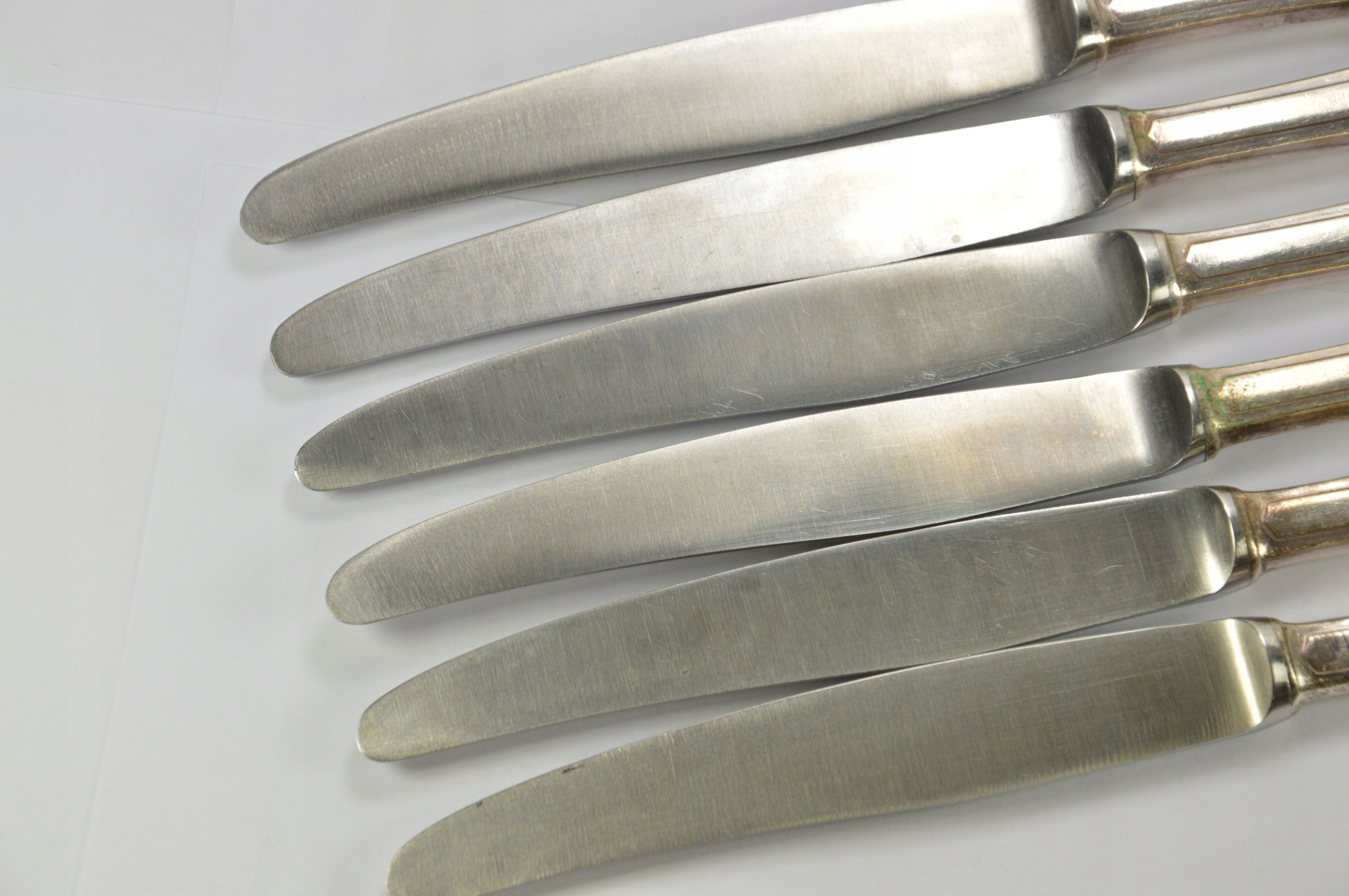 Красиві старовинні оригінальні обідні ножі від Fraget. Пластинчасті ножі, східний стиль, видимі незначні сліди використання, набір 6 штук.