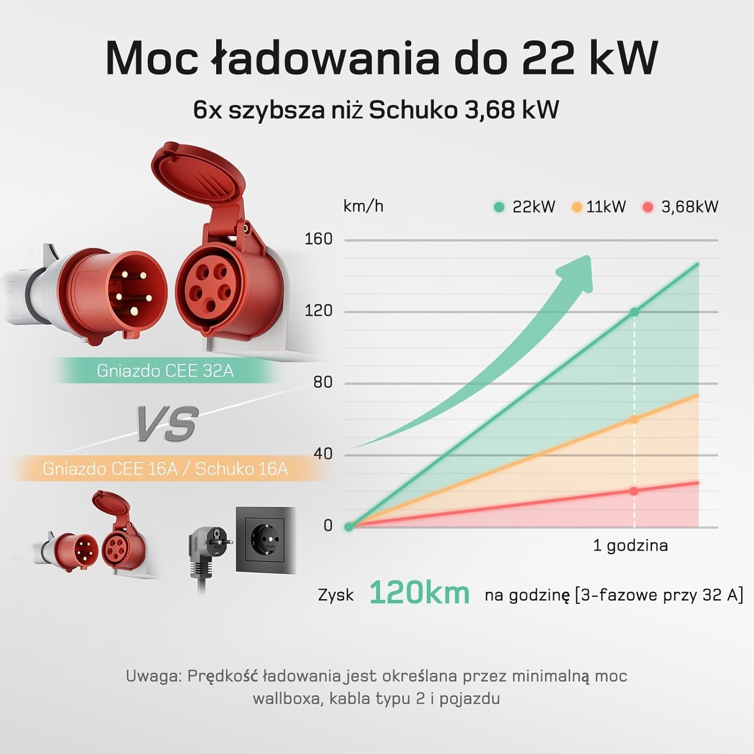 - Просте встановлення підключай і працюй. Цей мобільний настінний зарядний пристрій потужністю 22 кВт із вилкою CEE не вимагає складного встановлення. Просто вставте вилку CEE в розетку та підключіть зарядний кабель типу 2 - заряджання почнеться негайно.