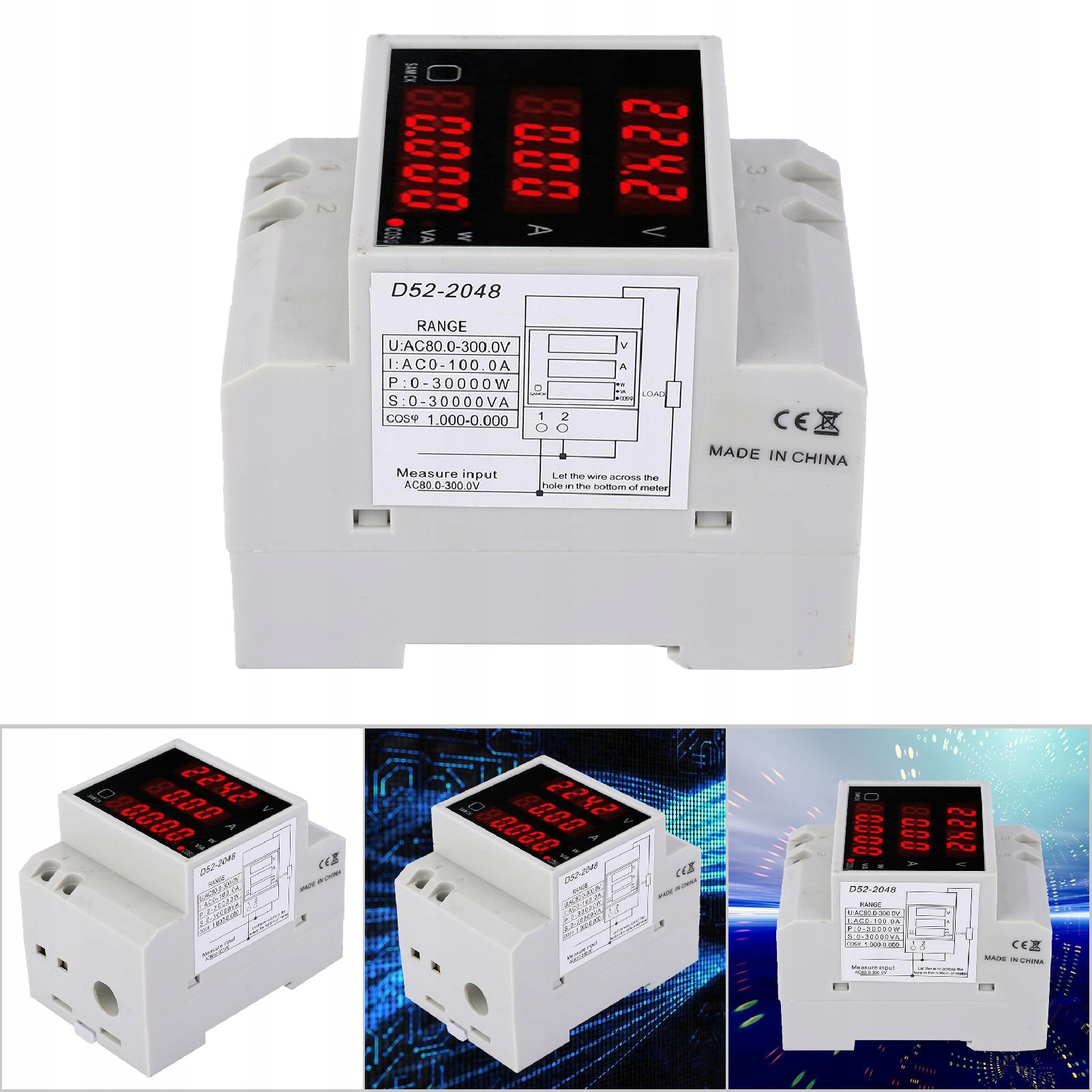 - Діапазон вимірювання: напруга змінного струму: 80–300 В змінного струму, струм змінного струму: 0–100 A
