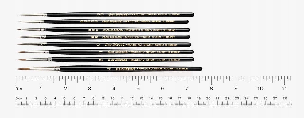 У них надзвичайно маленький колючий і неймовірна гнучкість та поглинання. Щітки щітки були поміщені в відшліфовану срібну підгонку, розташовану на короткій чорній ручці. Киски маестро будуть ідеальними для мініатюрного живопису, моделювання, малювання ляльок, статуетки, реконструкції та ретушування. Кожна щітка була ретельно перевірена на стадії виробництва. 4