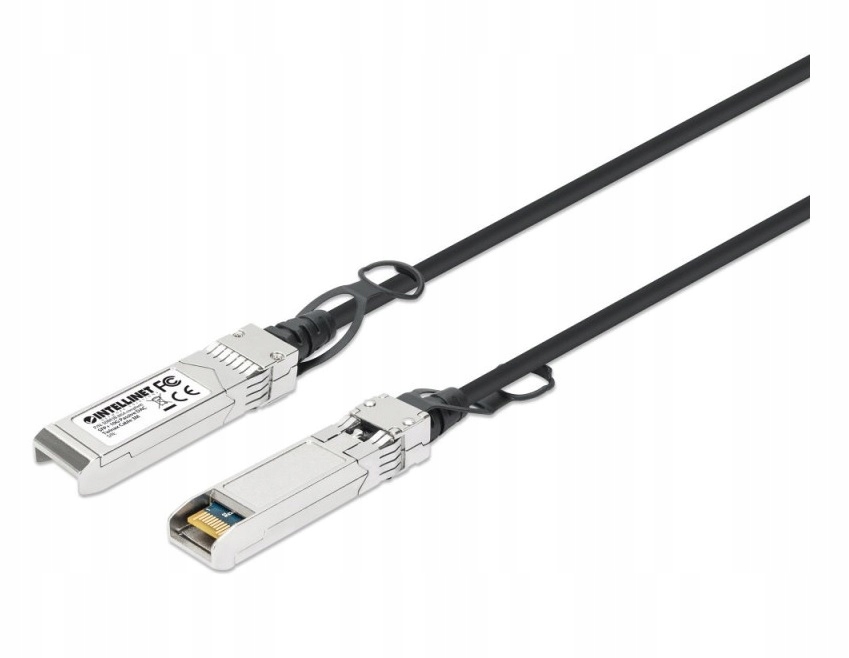Кабель Intellinet Twinax SFP+ 10G DAC (Direct Attach Copper), пасивний, довжиною 3 м, призначений для підключення двох портів SFP+, максимальна сумісність - сумісний з MSA, пряме підключення через мідний кабель, AWG 30, чорний