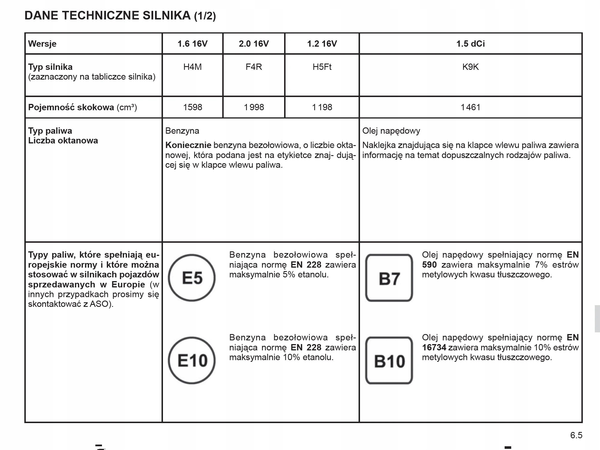 1.2 16V, 1.3 TCe, 1.6 16V, 2.0 16V, 1.5 dCi