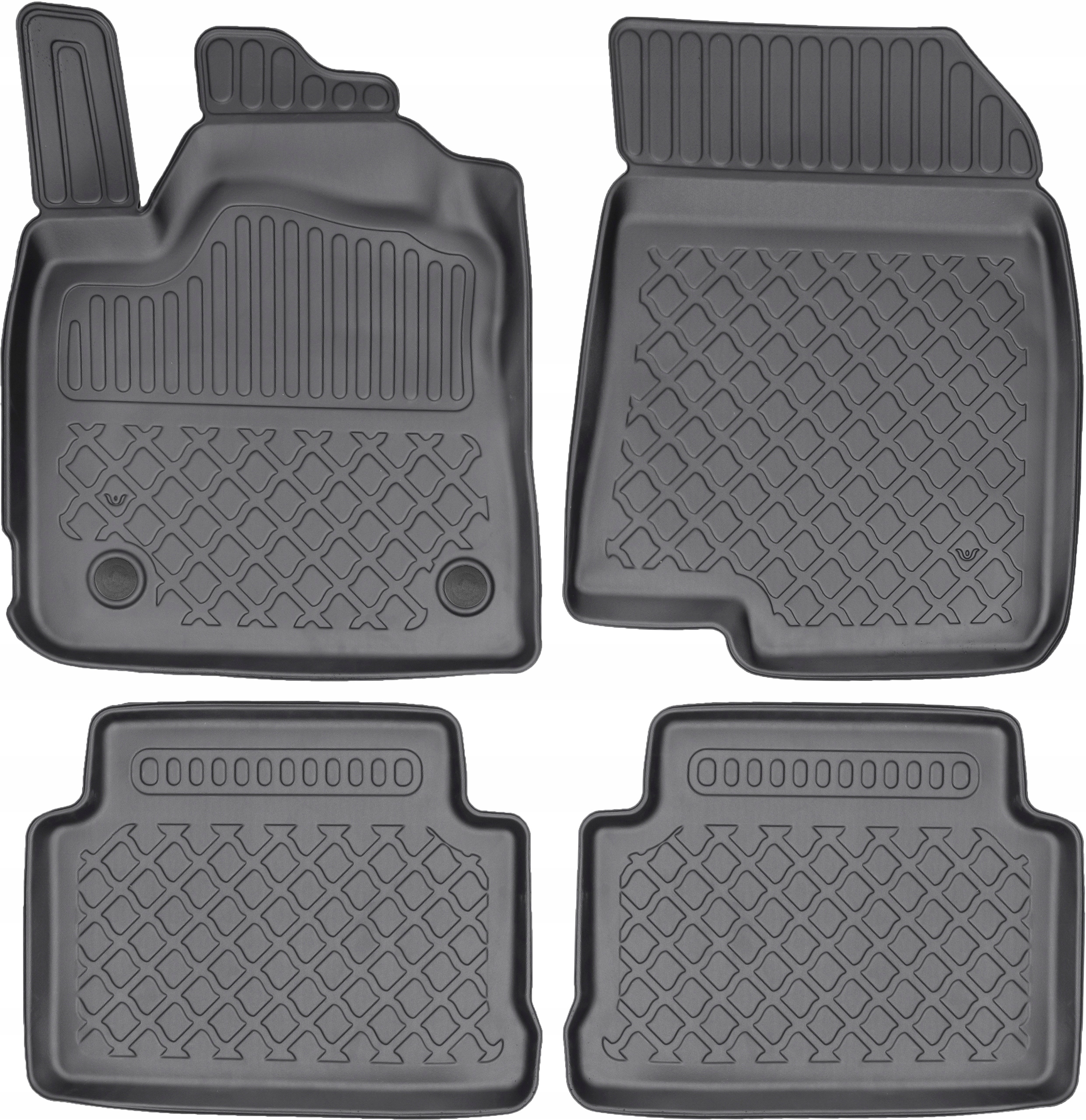 Пропоновані килимки були точно розроблені за формою підлоги, враховуючи не лише марку/модель автомобіля, а й рік випуску та версію кузова, тому вони ідеально підходять . Килимки виготовлені з високоякісного, міцного та армованого пластику, не містять шкідливих для здоров'я речовин, що забезпечує безпечне використання. Високий комір (край) захисний навколо килимків і стабільність форми ефективно утримують воду та бруд, захищаючи оригінальну оббивку автомобіля від бруду. Безпечний у використанні завдяки практичній та зручній у використанні системі кріплення до підлоги автомобіля. Система кріплення адаптована до марки/моделі автомобіля та захищає килимок від переміщення під час руху. Матова обробка та витончений малюнок на поверхні забезпечують естетичний вигляд автоковриків.
