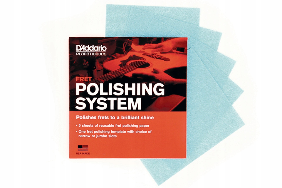 D'Addario FRET System - це таємниця, завдяки якому пороги гітари або басів будуть світити, як нові. Він містить 5 аркушів паперу для багаторазового використання та шаблон, який слід розмістити на дошці під час полірування. Шаблон повинен бути вирізаний з внутрішньої частини упаковки. Протягом декількох хвилин ви можете зняти бруд, забруднення та корозію з порогів, які негативно впливають на звук та досвід гри на вашому інструменті. полірування - це дуже простий і в той же час дуже ефективний спосіб поліпшити якість порогів, що суттєво впливає на звук інструменту та зручність гри. /p>