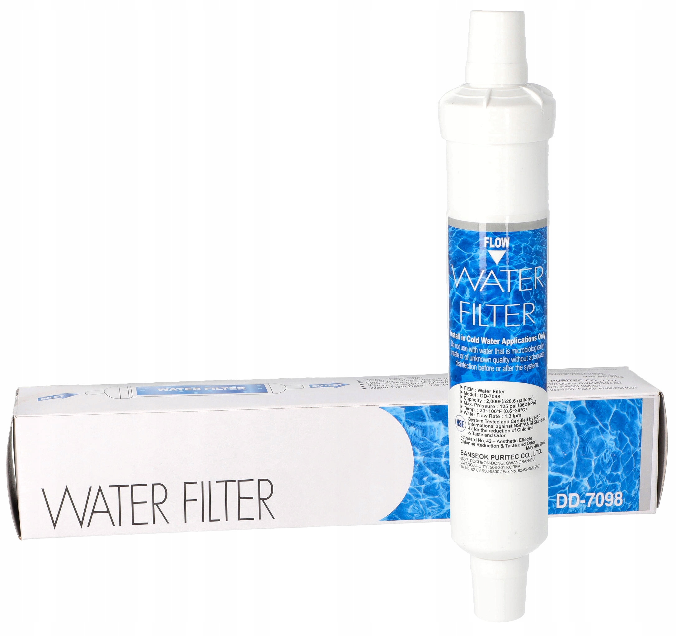 фільтр DAEWOO DD-7098-це універсальна вставка, встановлена на шланг. Холодильники з розповсюджувачем води зазвичай підключаються безпосередньо до мережі водопостачання. Рідина, взята звідти, не завжди відповідає найвищим стандартам чистоти. Фільтр води Daewoo DD-7098 видаляє з нього речовини, які можуть потрапити туди з мережі водопостачання. Механічні домішки (іржа, пісок) та хімічні речовини (важкі метали та хлор) зупиняються всередині вставки. Використання фільтра дозволяє насолоджуватися чистою, прохолодною водою або кубами льоду. Сертифікат - це підтвердження його фільтрації, високої якості та безпеки.