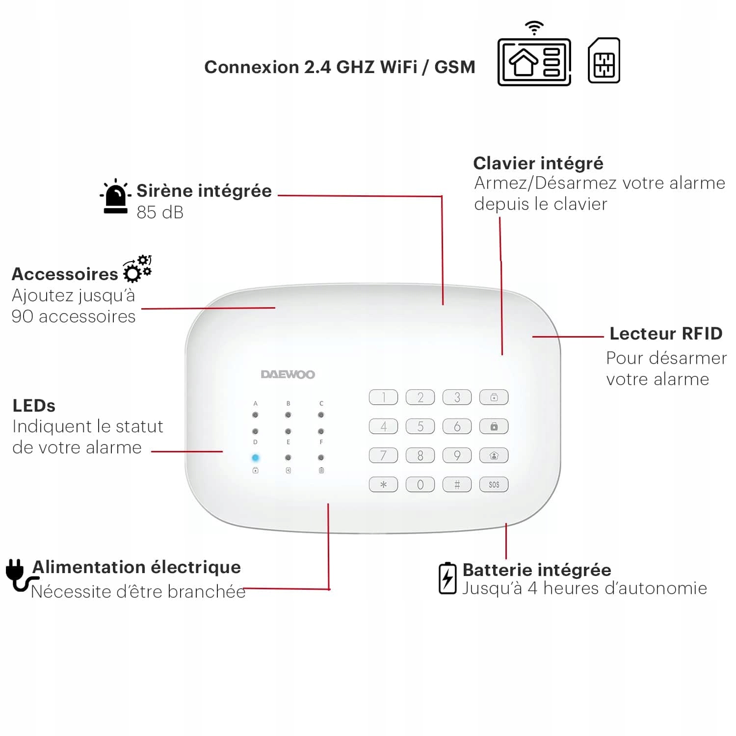 Варто зазначити, що Daewoo Security SA635 спеціально розроблений так, щоб бути сумісним з тваринами. Завдяки цьому, якщо у вас вдома є тварина, яка важить менше 12 кілограмів, тривога не буде випадково запущена, що забезпечує спокійну діяльність вашого вихованця. Сигналізація також оснащена функцією сповіщення Wi -Fi та SIM -карткою у випадку перерви в Інтернеті. Крім того, вбудований запасний акумулятор гарантує постійний захист у разі відмови живлення.
