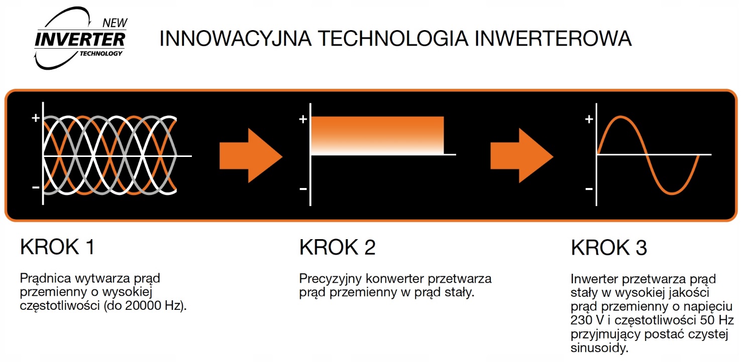 Сучасна інверторна технологія дозволяє підключати чутливі електронні пристрої, такі як ноутбуки, насоси або обігрівачі.