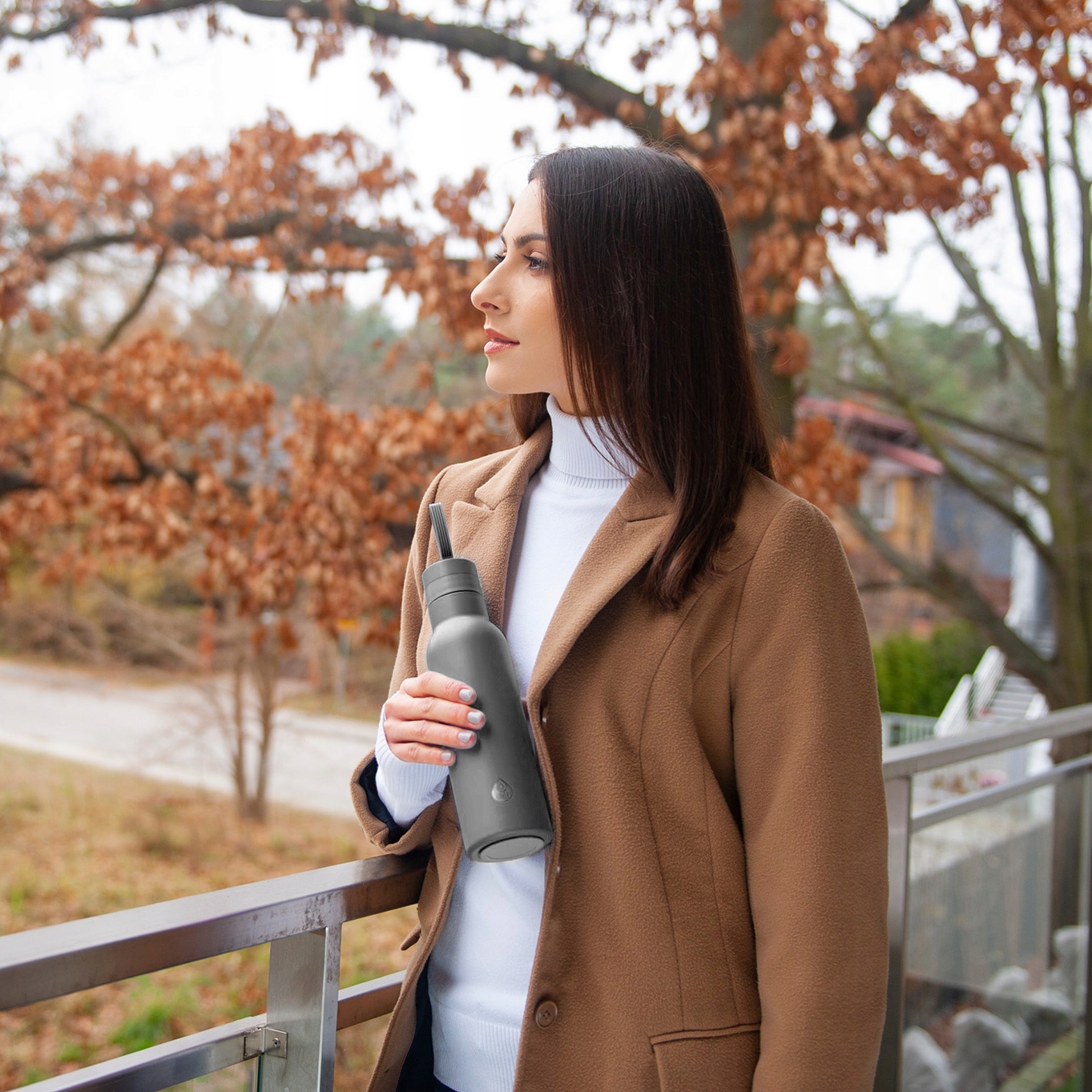 Купівля теплової пляшки з водою є важливим кроком до захисту навколишнього середовища . Це допоможе вам зменшити кількість відходів, що утворюються у вигляді одноразових чашок для кави чи чаю. Теплова пляшка працюватиме де завгодно - незалежно від погодних умов. Візьміть з собою свій улюблений напій і завершіть стиль дизайнерським бежевим дафі!