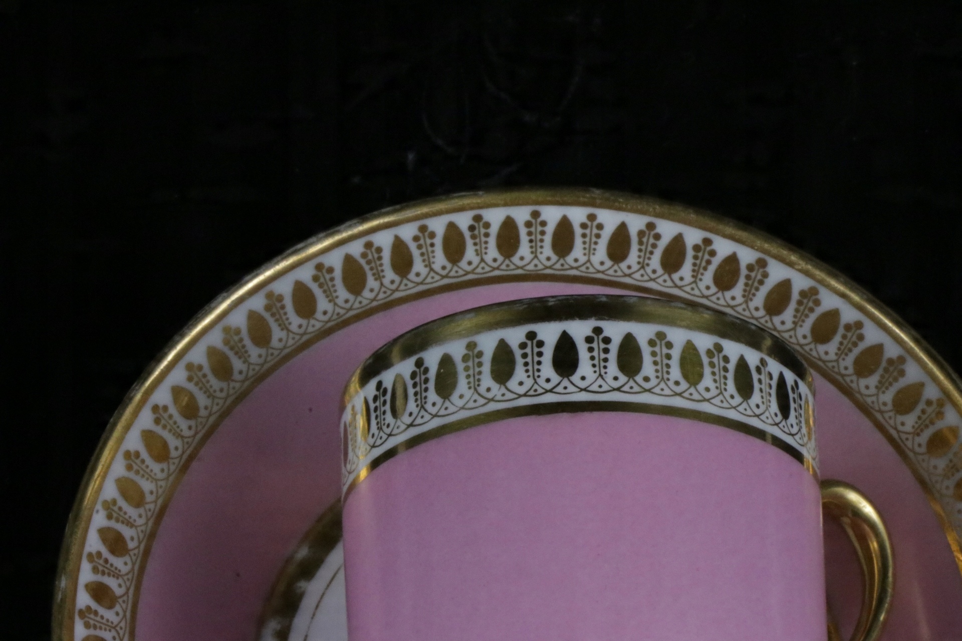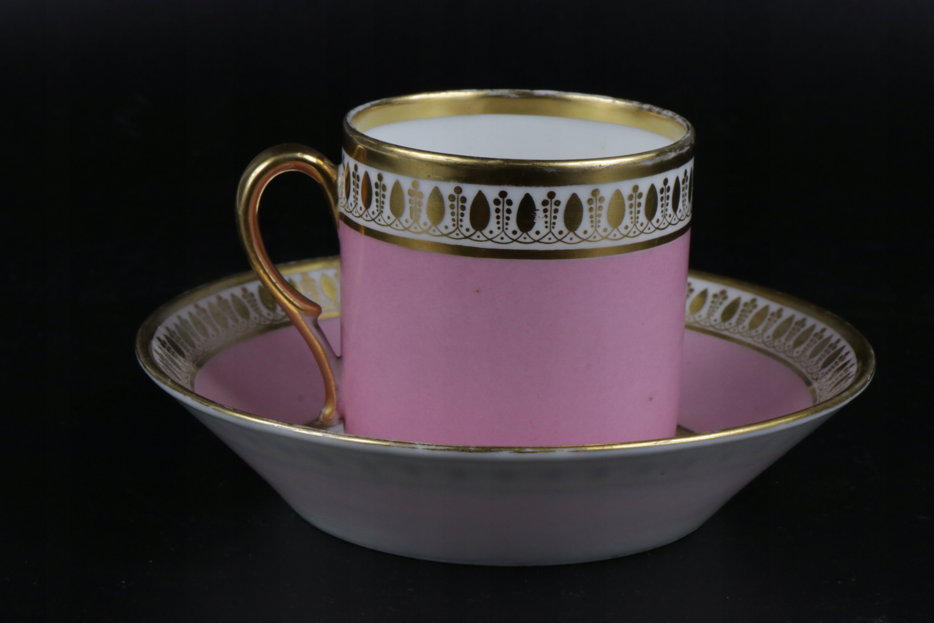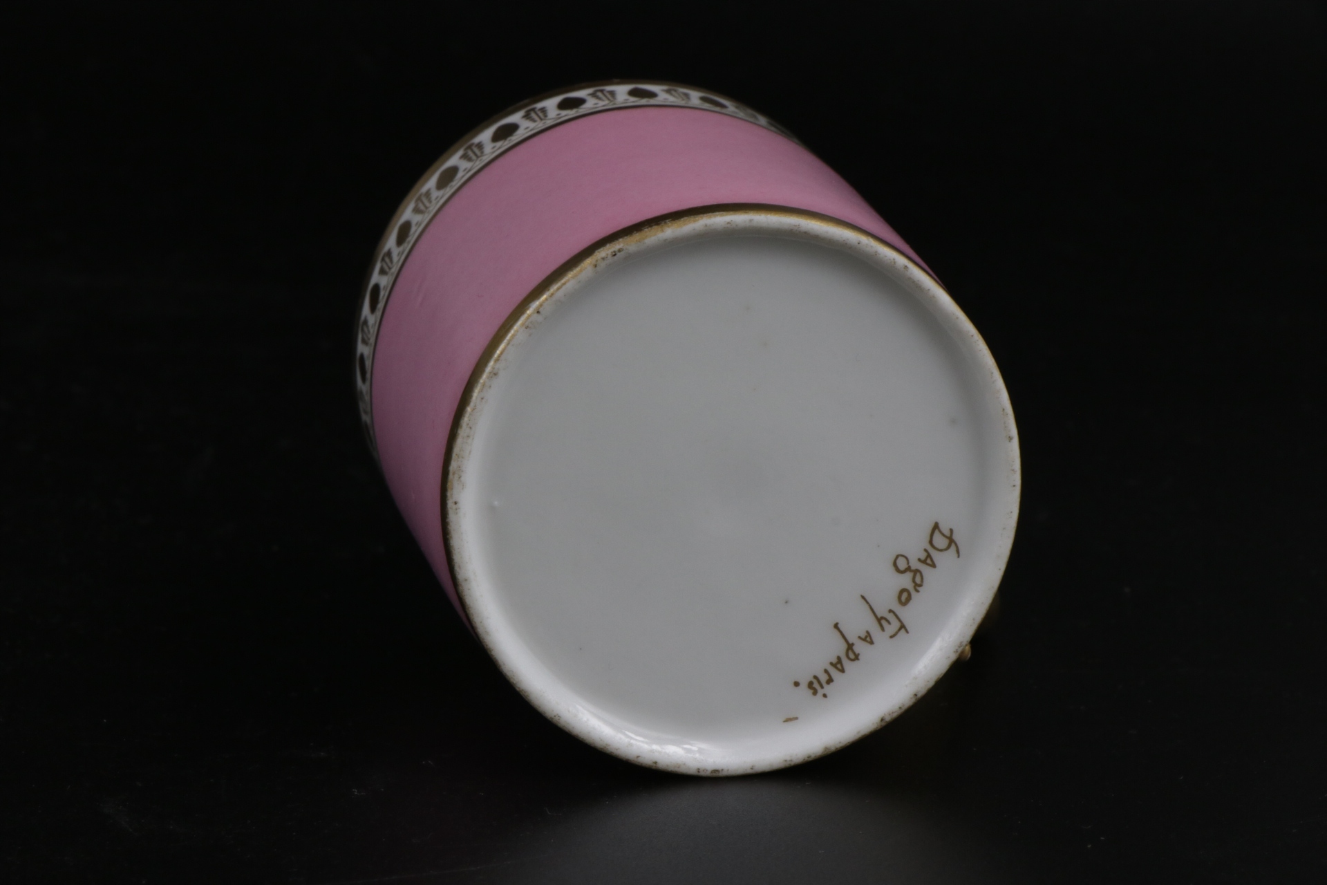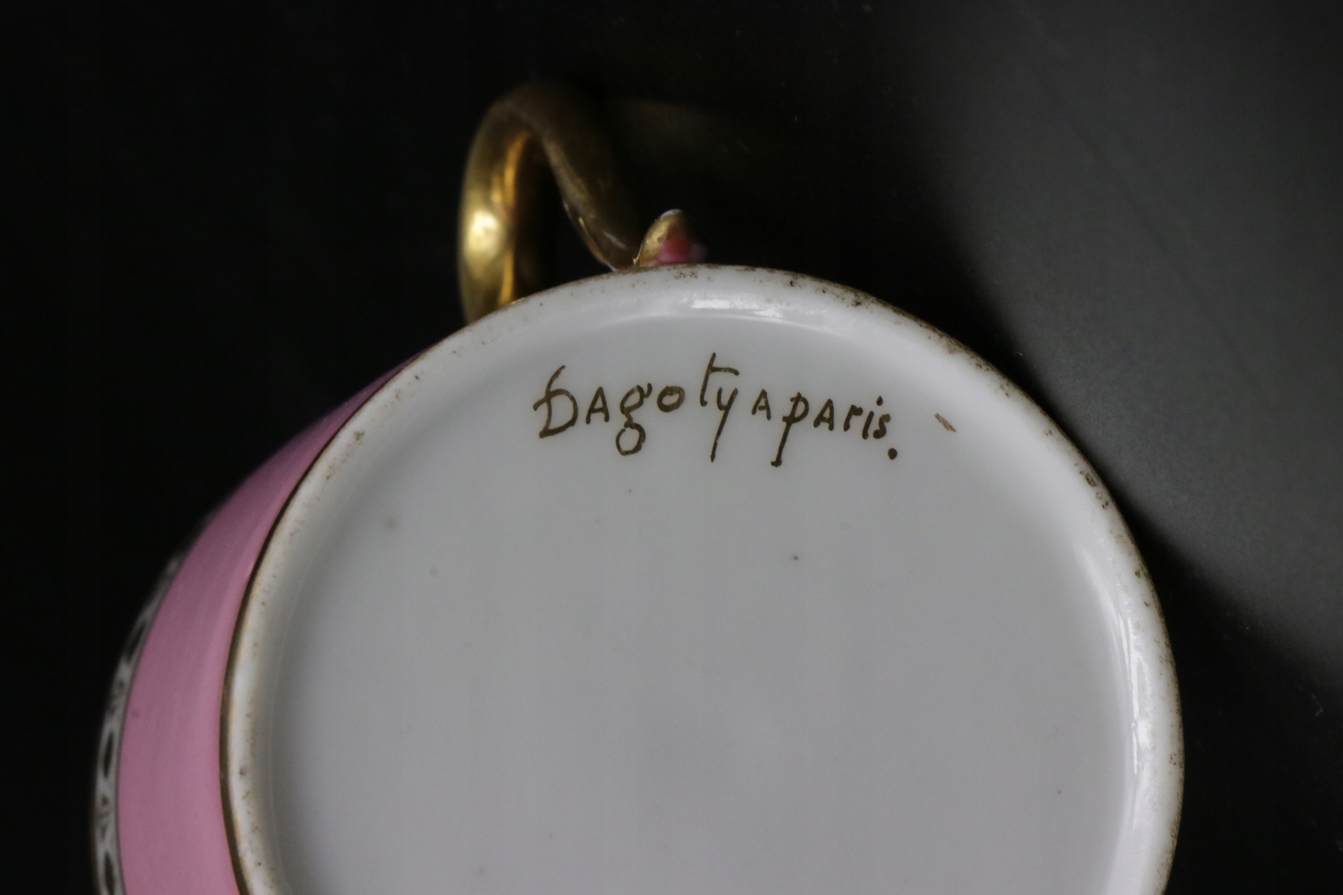 Дуже цікава та рідкісна французька чашка Даготі кінця XVIII - початку XIX століття. Дуже рідкісна ампірна порцеляна. Підписана чашка. Рожева паризька чашка з позолотою вручну.