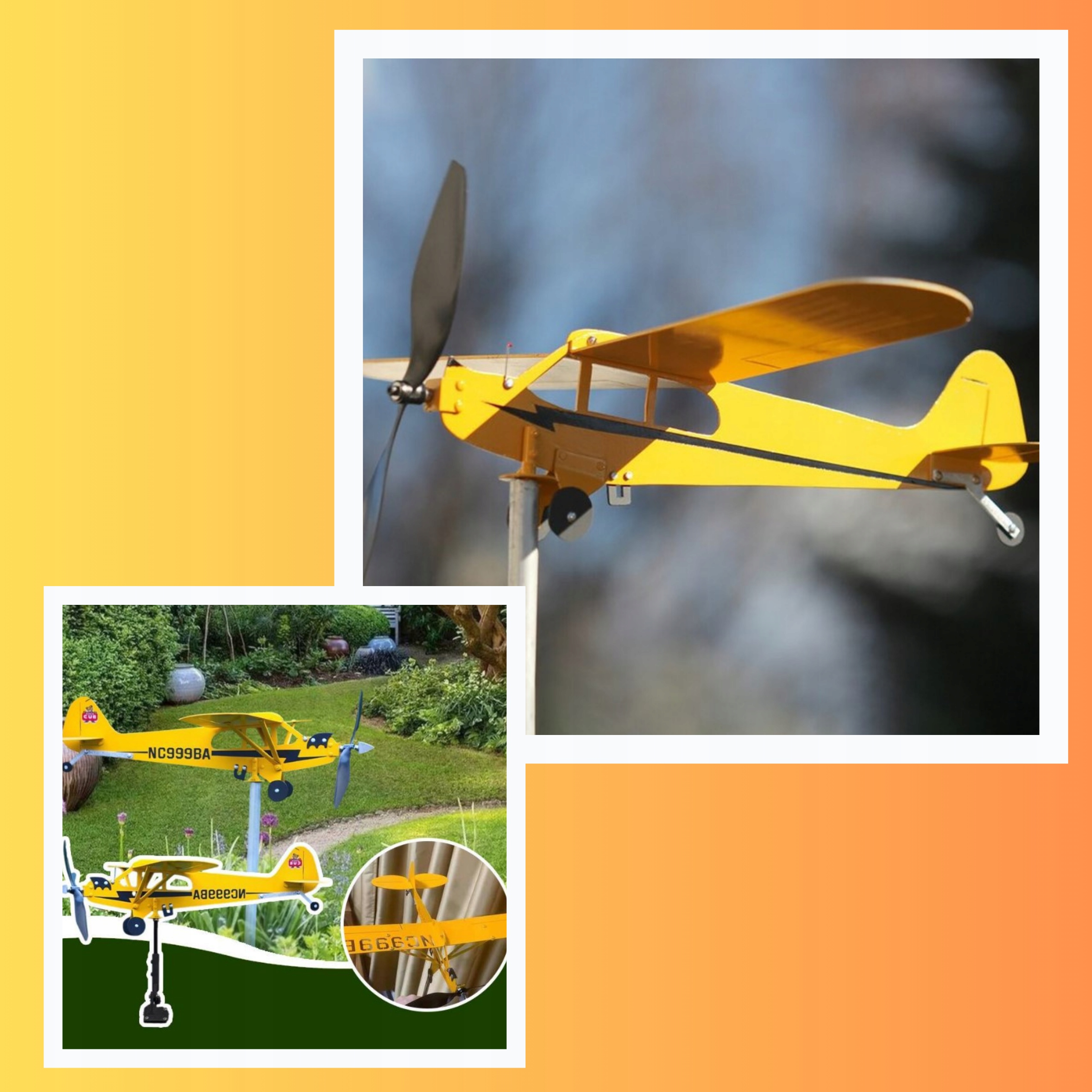 ⭐Садовий літак: Вітряк має форму стилізованого літака. Найчастіше він виготовляється з легкого матеріалу, такого як метал, дерево або пластик. Він розроблений так, щоб нагадувати маленьку модель літака з деталізованими крилами, фюзеляжем і хвостом. Він може мати різні кольори та візерунки відповідно до стилю саду чи фасаду будинку.