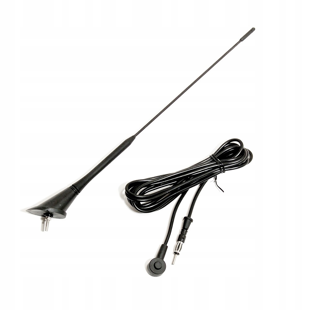 Ламінована дахова антена, призначена для прийому радіосигналу в автомобілі, складається з гвинтової штанги, монтажної розетки та кабелю живлення. Довжина штанги 40 см, довжина кабелю 330 см, кут нахилу антени 52°.