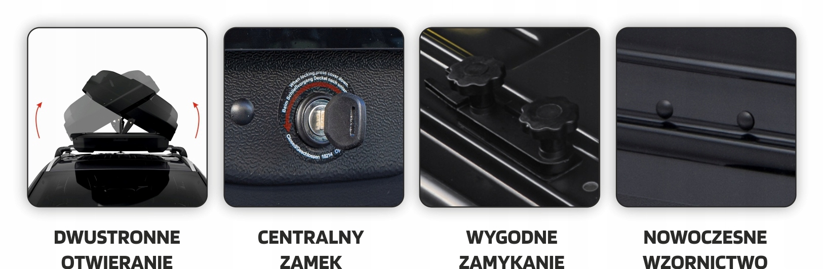 Можливість замкнути багажник на ключ дозволяє уникнути відкриття кришки сторонніми особами. Для забезпечення максимального захисту бокс оснащений 3-точковим центральним замком, що значно знижує ризик крадіжки, в порівнянні з моделями зі звичайним замком. Всередині чохла також є ручки для фіксації вантажу ременями або еспандорами.
