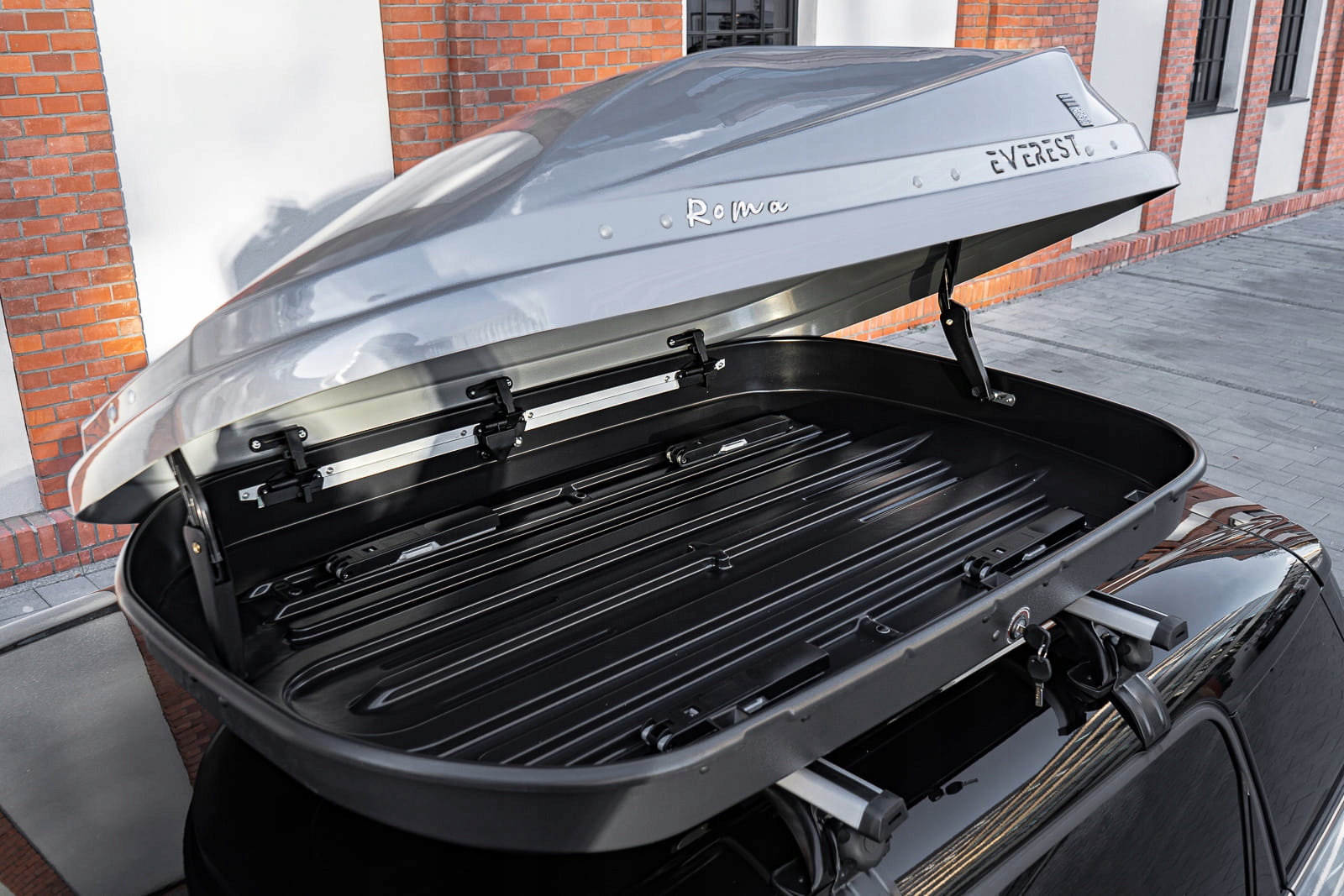 Бокс EVEREST, модель ROMA, об'єм 360 л, сріблястий. У набір входить набір із 4 алюмінієвих кріплень вартістю 589 злотих БЕЗКОШТОВНО.
